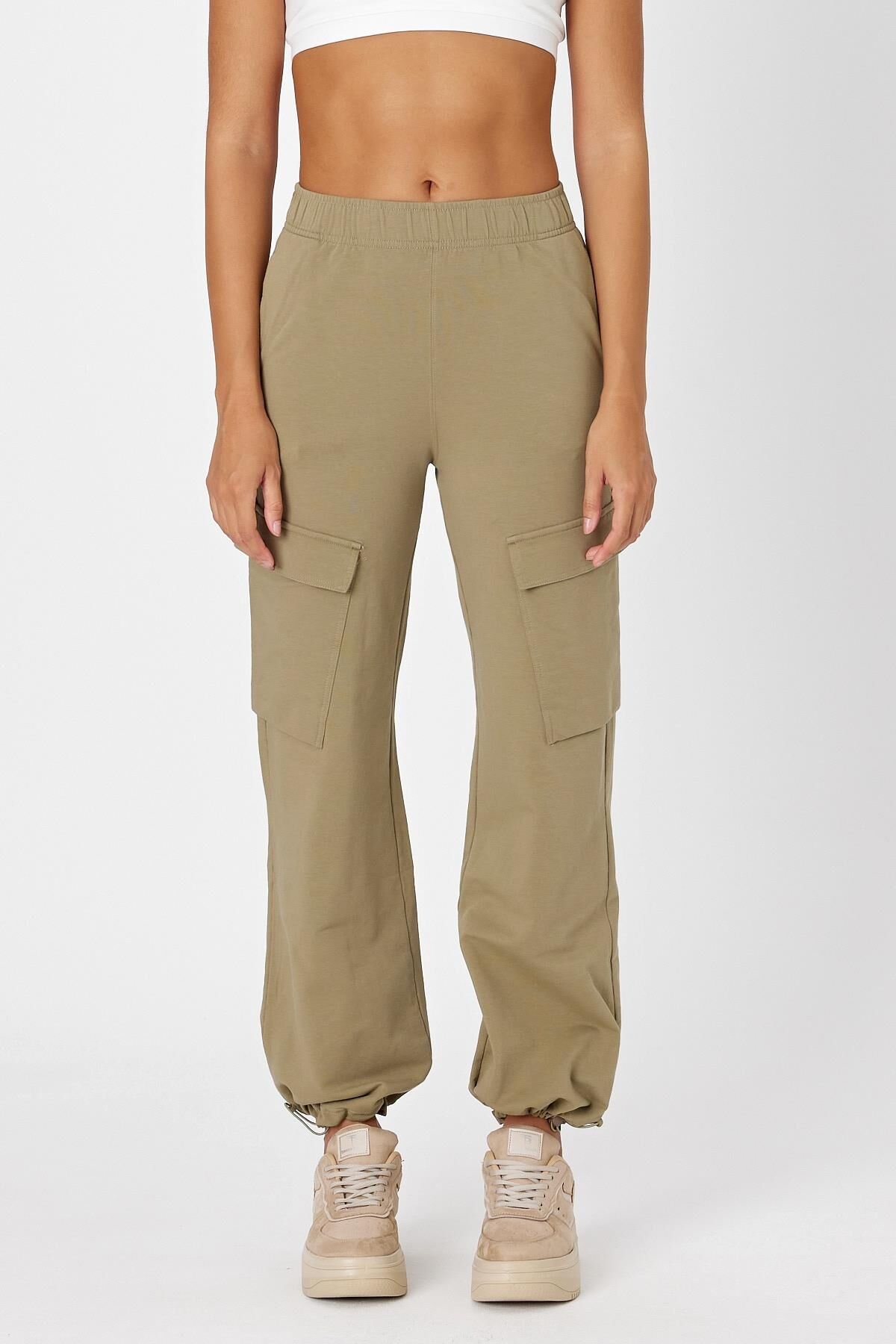 Comm-Ci Uzziel Kargo Cepli Paçası Lastikli Rahat Kesim Örme Pantolon - yeşil