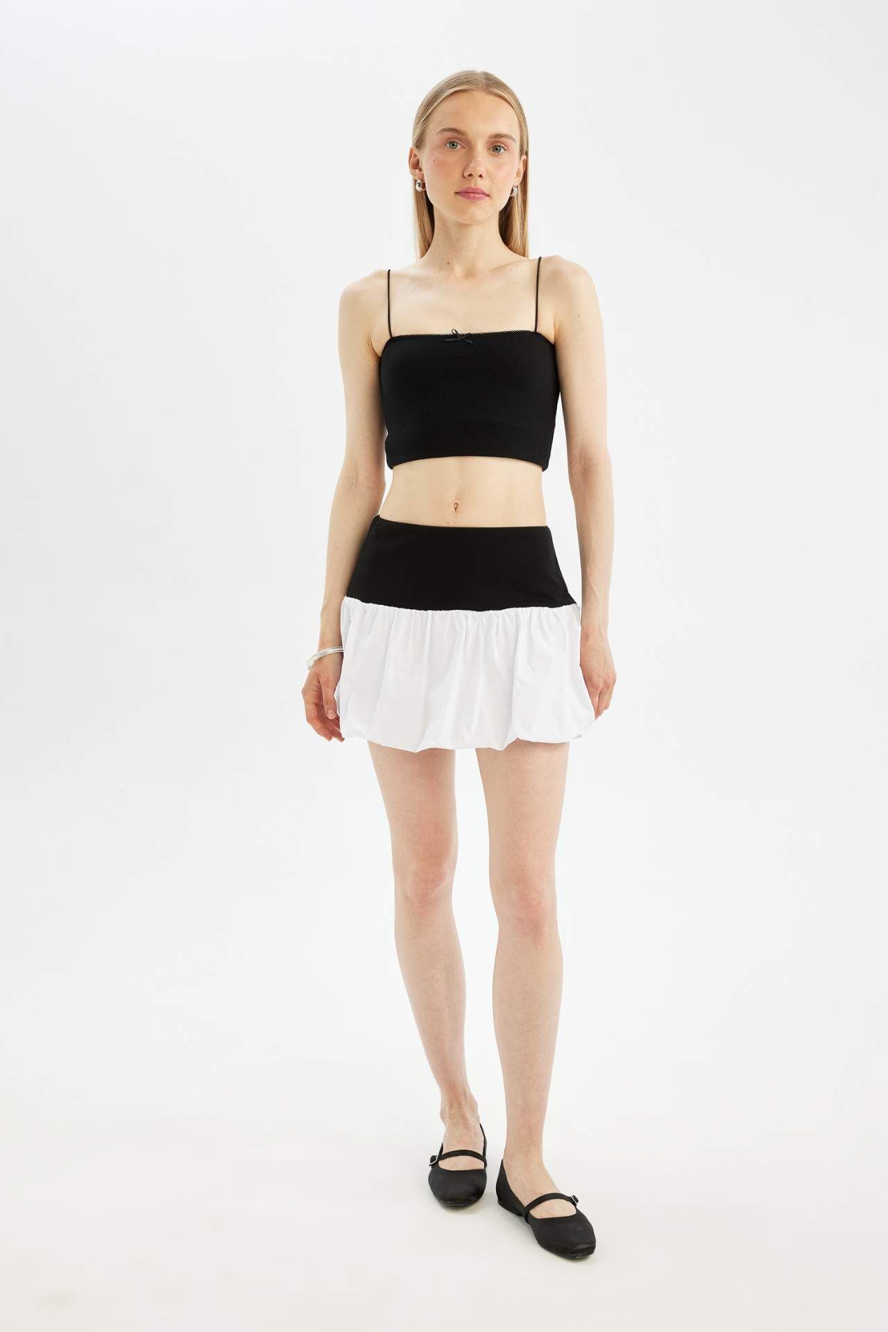 Coool Balloon Fit Yüksek Bel Pamuk Astarlı Mini Etek