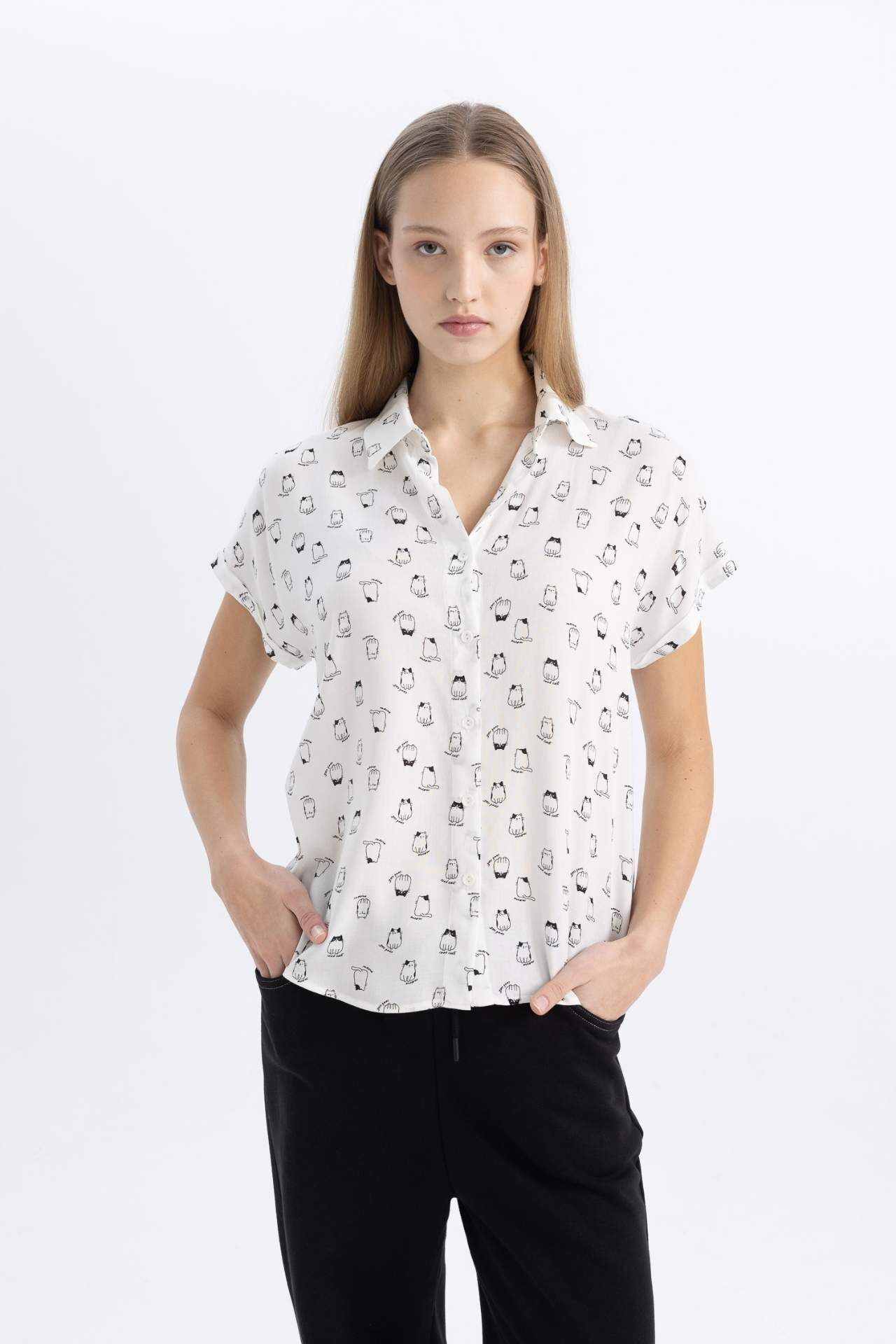 Şıklığı ve konforu bir arada sunan Coool Desenli Kısa Kollu Gömlek, gardırobunuzun vazgeçilmezi olmaya aday. Kaliteli kumaşı ve özgün tasarımıyla her tarza uyum sağlar. Stilinizi yansıtırken rahatlığınızdan ödün vermek istemiyorsanız, bu gömlek tam size göre! Viskoz 100%,Viskoz 100% Manken Bedeni: Göğüs: 84 Boy: 1,77 Basen: 91 Bel: 58