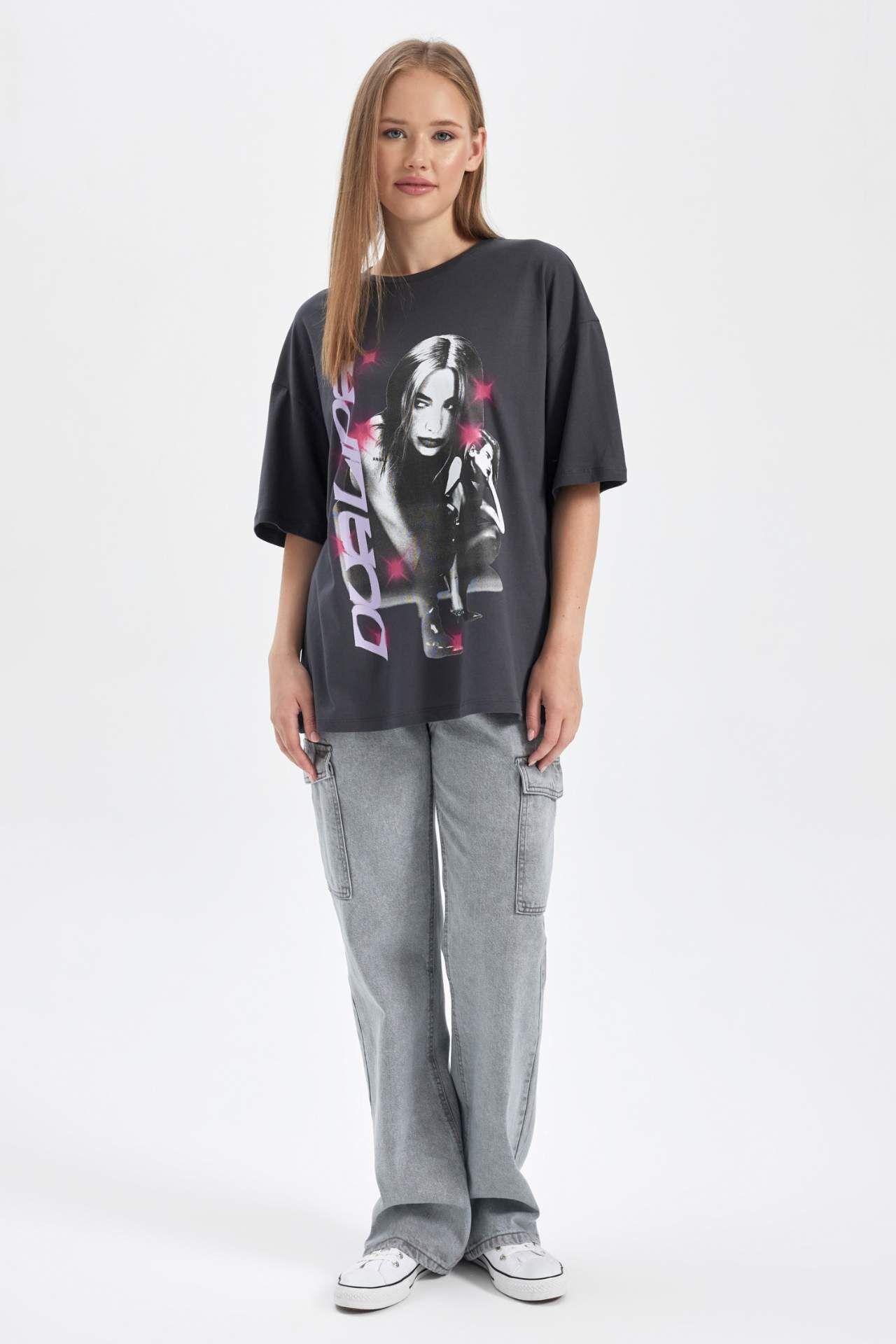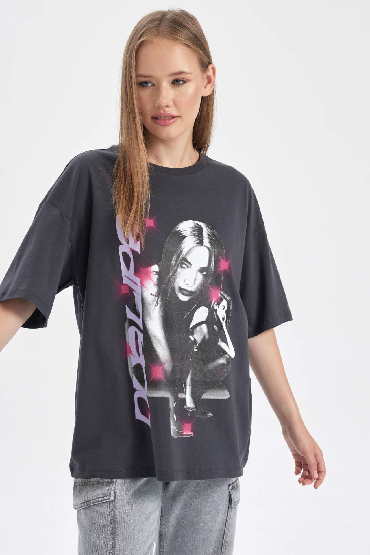 DeFactoFit Coool Dua Lipa Oversize Fit Baskılı Kısa Kollu Tişört B2970AX23HSAR141