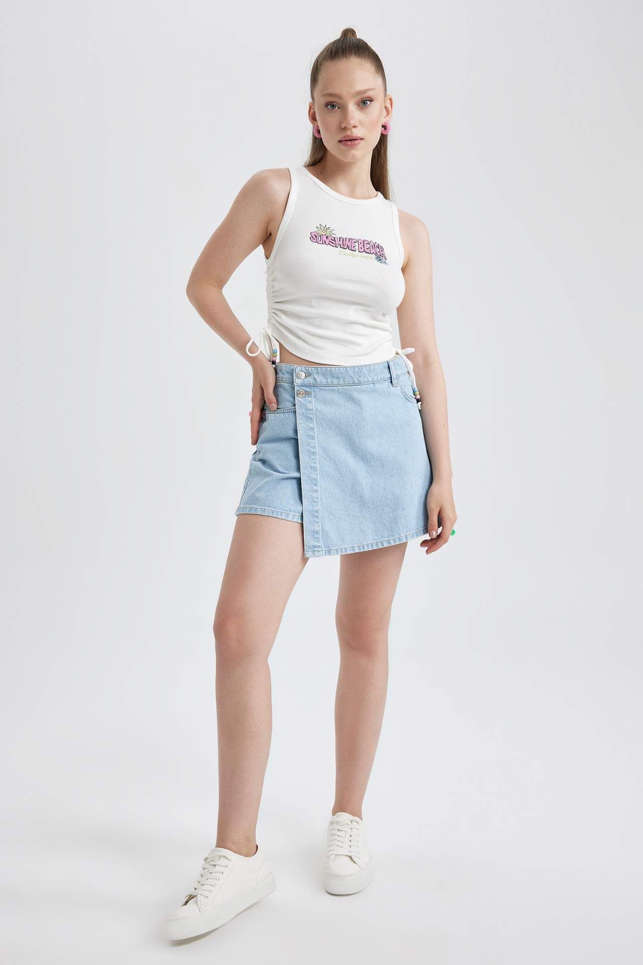 Şık giyinmeyi sevenlerin tarzını yansıtan, kolsuz, dolabınızda mutlaka olması gereken anahtar parça olarak, giydiğinizde rahat hissedebileceğiniz pamuklu elastik yapısıyla, suni deri jogger pantolon, geniş paça pantolon, yüksek bel jean, jean şort, suni deri şort, crop hırka, crop blazer, oversize blazer ve hırkalarla uyumlu bir şekilde kombinleyebileceğiniz DeFacto Kadın Coool Fitted Baskılı Ribana Atlet. Pamuk 97%,Elastan 3%,Pamuk 97%,Elastan 3% Manken Bedeni: Göğüs: 78 Boy: 1,73 Basen: 87 Bel: 57