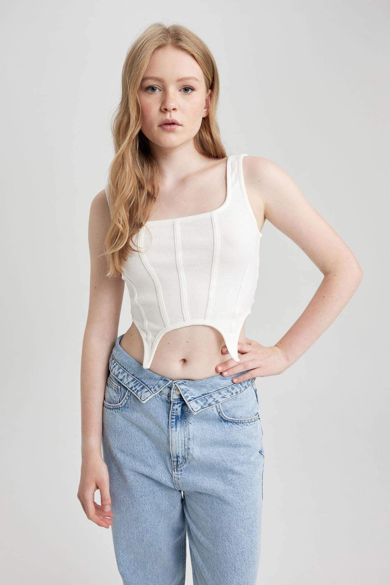 Fitted Korse Görünümlü Fitilli Kaşkorse Atlet, korse esintili tasarımı ve fitilli dokusuyla vücuda oturan şık bir siluet sunar. Esnek kumaşı sayesinde gün boyu konforlu bir kullanım sağlar. Pamuk 98%,Elastan 2%,Pamuk 98%,Elastan 2% Manken Bedeni: Göğüs: 82 Boy: 1,68 Basen: 92 Bel: 64