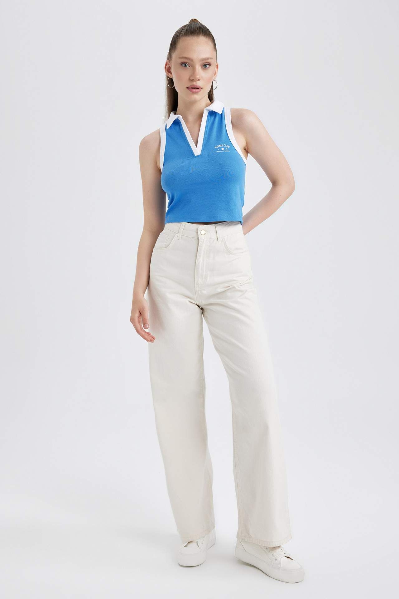 Şık giyinmeyi sevenlerin tarzını yansıtan, kolsuz, polo yaka, baskılı, dolabınızda mutlaka olması gereken anahtar parça olarak, giydiğinizde rahat hissedebileceğiniz pamuklu elastik yapısıyla, suni deri jogger pantolon, geniş paça pantolon, yüksek bel jean, jean şort, suni deri şort, crop hırka, crop blazer, oversize blazer ve hırkalarla uyumlu bir şekilde kombinleyebileceğiniz DeFacto Kadın Coool Fitted Slogan Baskılı Ribana Atlet. Pamuk 98%,Elastan 2%,Pamuk 98%,Elastan 2%