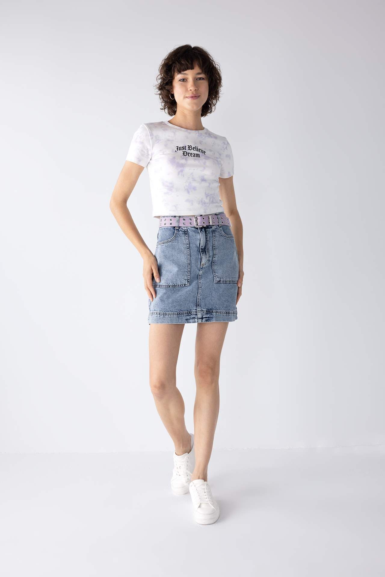 Trend rahat tasarımı ve pamuk karışımlı batik desenli kumaşı ile her mevsim gardırobunuzda bulunması gereken, blazer gömleklerinizin içinde şehirli ve havalı, basic kombinlerinizde sınırsız ve rahat hissedebileceğiniz her gün bir çok kombininize dahil edebileceğiniz kullanışlı rengiyle DeFacto Kadın Coool Fitted Slogan Desenli Kısa Kollu Tişört. Pamuk 98%,Elastan 2%,Pamuk 98%,Elastan 2%
