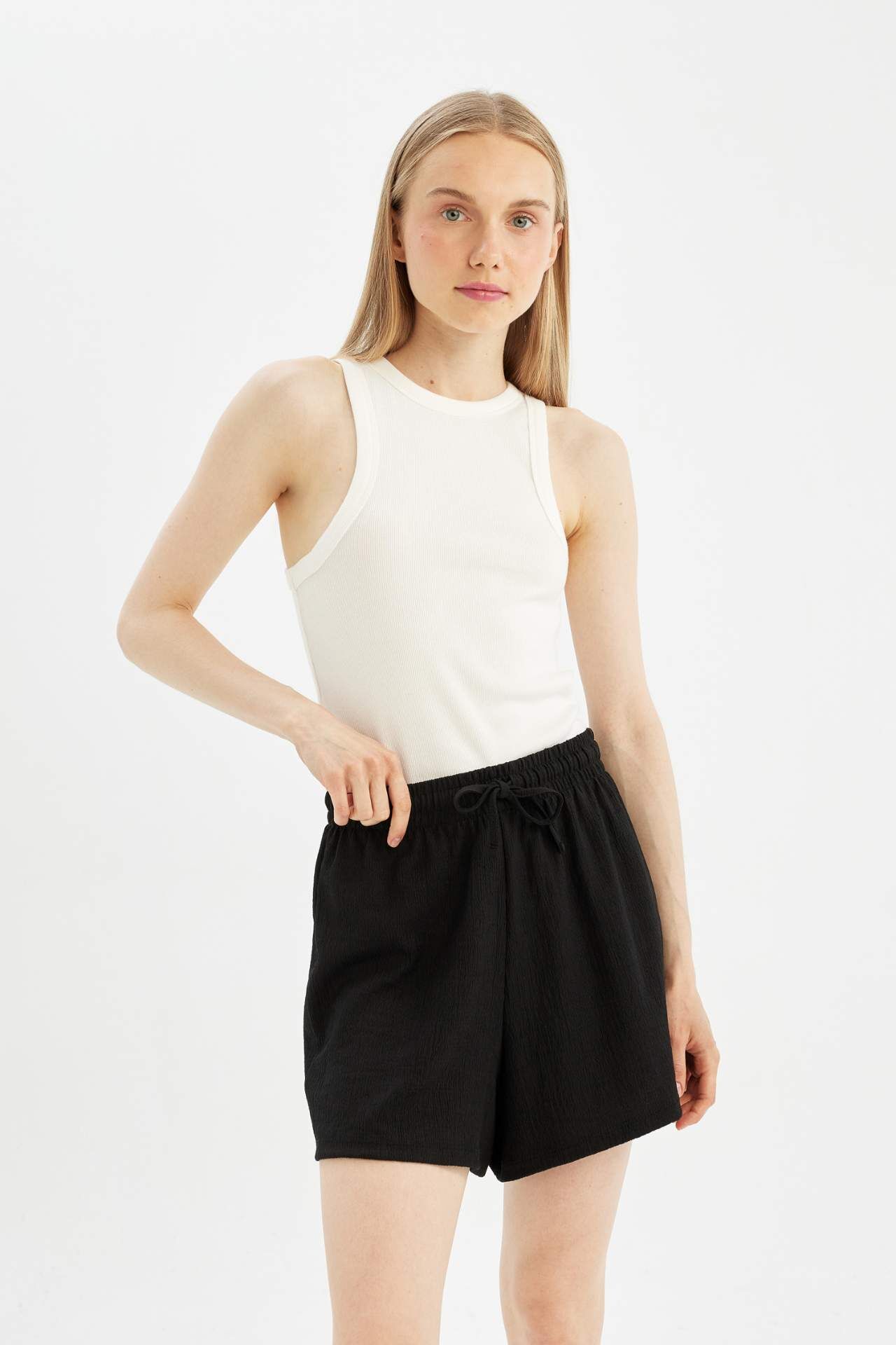 Hafif ve rahat Coool Loose Fit Bürümcük Şort, yaz aylarında şıklığı ve konforu bir arada sunar. Yüksek kaliteli kumaşı ve modern tasarımı ile her tarza uyum sağlar. Şık detayları ve gevşek kesimi ile gardırobunuzun vazgeçilmezi olmaya aday. Bu şortla tarzınızı ön plana çıkarın ve yazın keyfini çıkarın. Elastan 1%,Poliester 99%,Elastan 1%,Poliester 99% Manken Bedeni: Göğüs: 80 Boy: 1,75 Basen: 89 Bel: 60