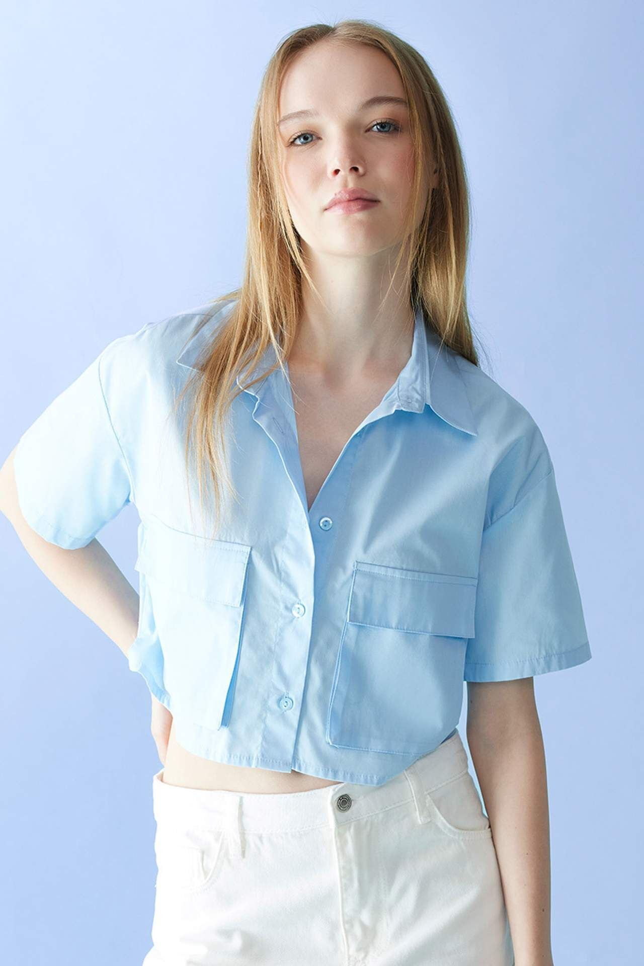 DeFactoFit Coool Oversize Fit Gömlek Yaka Kısa Kollu Gömlek