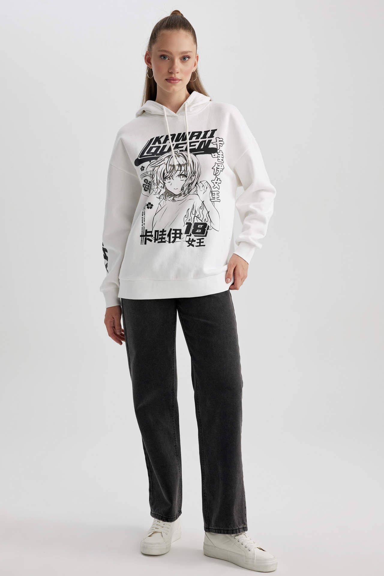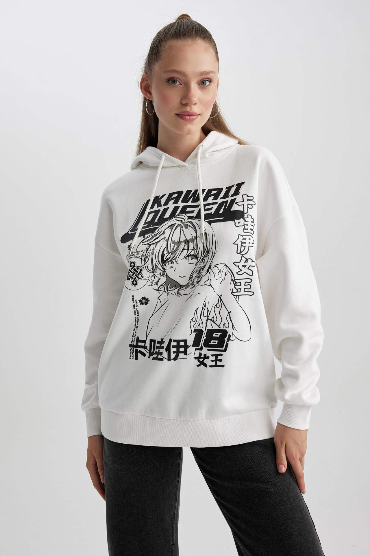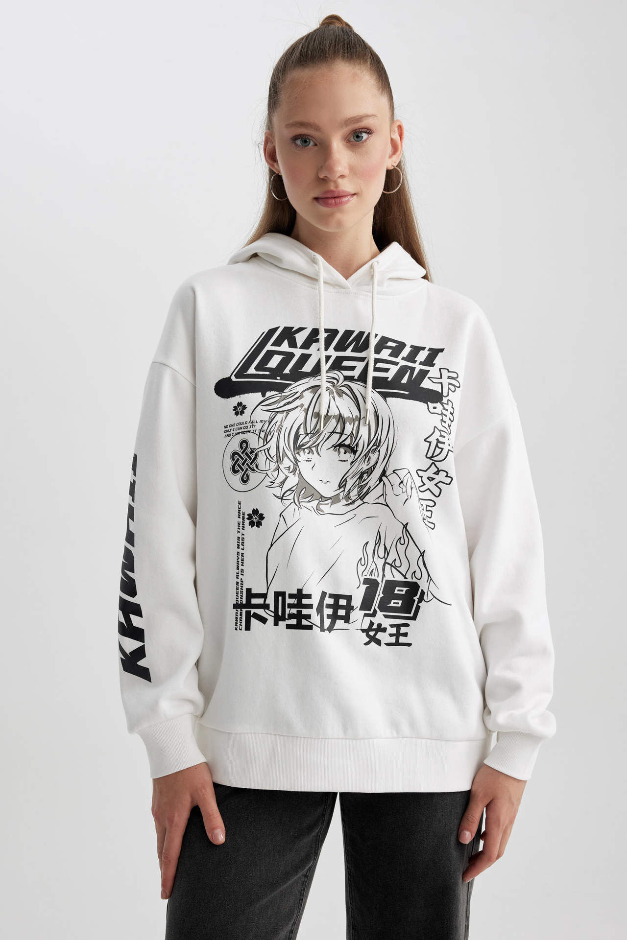 Oversize fit, bol kesimli kalıbı, kapüşonlu, baskılı rahat kalın sweat kumaşıyla basic şıklık için vazgeçemeyeceğiniz, bisiklet taytı, skinny fit jean, mom jean, jogger pantolon ve jogger eşofman altı ile ister sporda ister günlük giyiminizde her mevsim kombinleyebileceğiniz, sade tasarımıyla DeFacto Kadın Coool Oversize Fit Sweatshirt. Pamuk 60%,Poliester 40% Manken Bedeni: Göğüs: 78 Boy: 1,73 Basen: 87 Bel: 57
