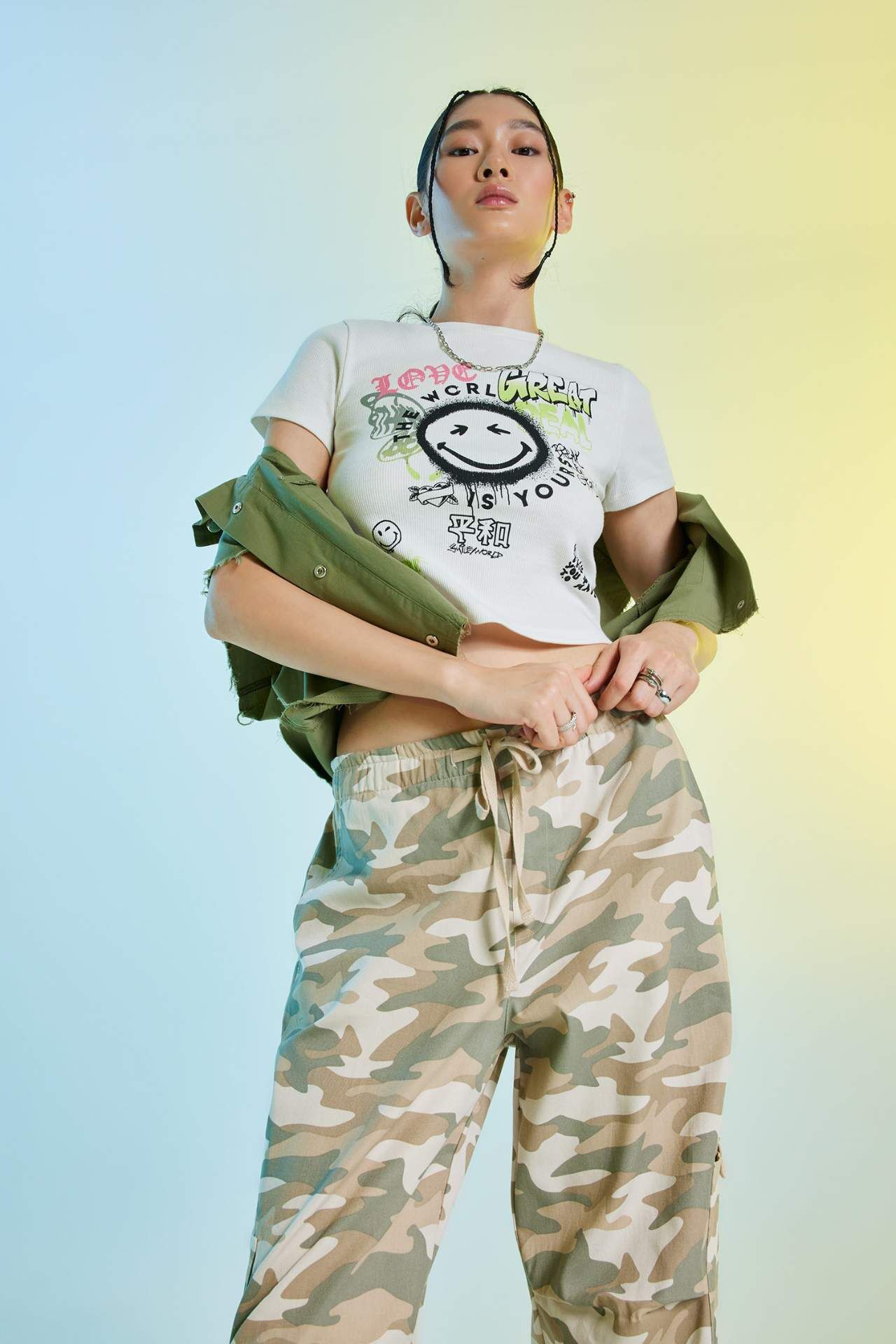Günlük tarzınızda konforunuzdan ödün vermeyeceğiniz, fitted, SmileyWorld baskılı farklı tasarımı ile günlük kombinlerinizin vazgeçilmezi olmaya aday, jogger eşofman altı, jogger pantolon, jean pantolon, jean şort, mom jean, boyfriend jean, yüksek belli pantolon, sweat şort, mini şort ve jean eteklerinizle tamamlayabileceğiniz, bisiklet yaka tasarımıyla DeFacto Kadın Coool SmileyWorld Lisanslı Fitted Baskılı Kısa Kollu Tişört. Pamuk 97%,Elastan 3%,Pamuk 97%,Elastan 3% Manken Bedeni: Göğüs: 82 Boy: 1,77 Basen: 91 Bel: 59