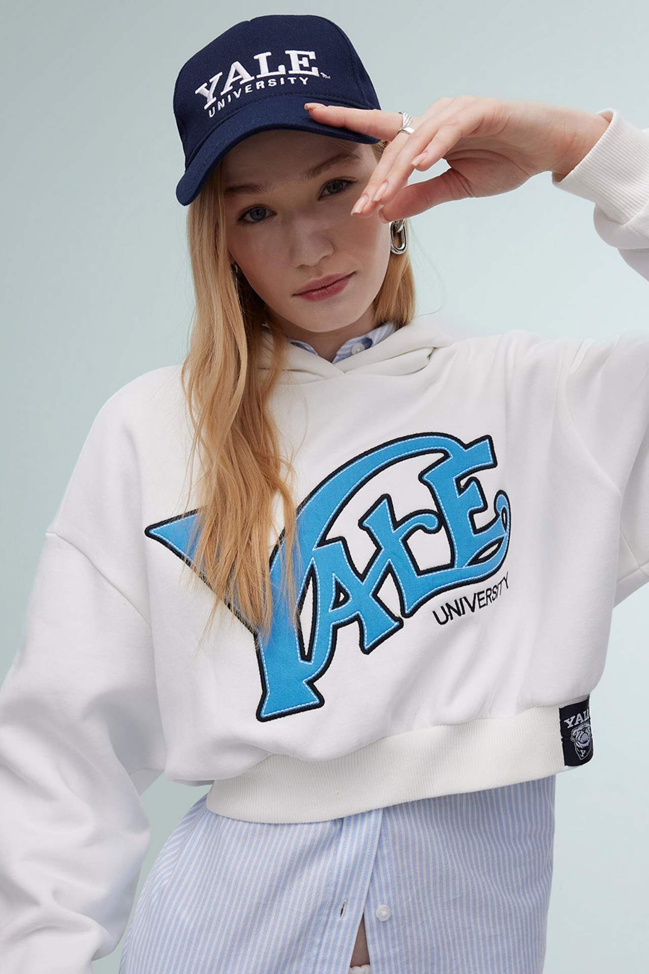 Yale University baskılı oversize kapüşonlu crop sweatshirt, geniş kalıbı ve modern kesimiyle rahat bir stil sunar. Yumuşak dokusu ve kısa boy tasarımıyla günlük kombinlerde konforlu bir kullanım sağlar. Pamuk 56%,Viskoz 9%,Poliester 35%,Pamuk 56%,Viskoz 9%,Poliester 35%,Pamuk 56%,Viskoz 9%,Poliester 35% Manken Bedeni: Göğüs: 79 Boy: 1,78 Basen: 89 Bel: 57