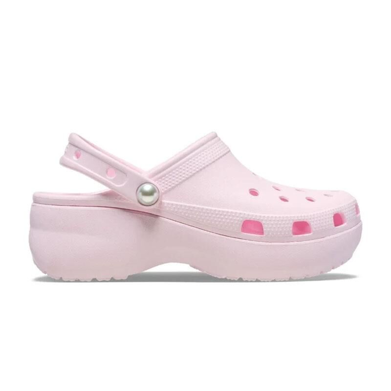 Crocs Classic Platform Pearl Clog kadın sandalet, klasik Crocs konforunu yükseltilmiş taban ve inci parlaklığındaki yüzeyiyle bir araya getiriyor. Zarif pembe rengi ve modern platform taban yapısı, tarzınıza feminen ve enerjik bir dokunuş katarken, Croslite™ malzeme ile üretilmiş yapısı sayesinde ultra hafiflik ve konfor sağlar. Delikli üst tasarımı sayesinde nefes alabilirlik sunar ve Jibbitz™ aksesuarlarla kişiselleştirilebilir.