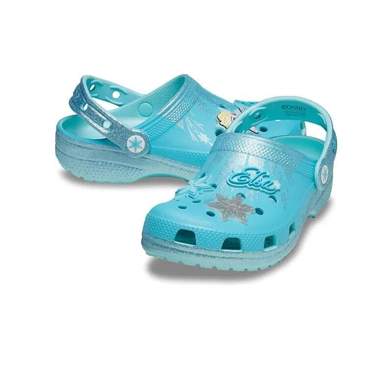 Frozen Elsa temalı Crocs Classic Clog T, çocukların her adımını eğlenceye dönüştürürken aynı zamanda eşsiz bir yaz konforu sağlar.