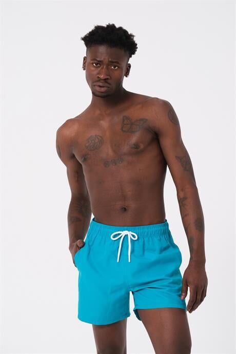 DAAG Turkuaz Düz Renk Standart Boy Erkek Deniz ve Havuz Şortu