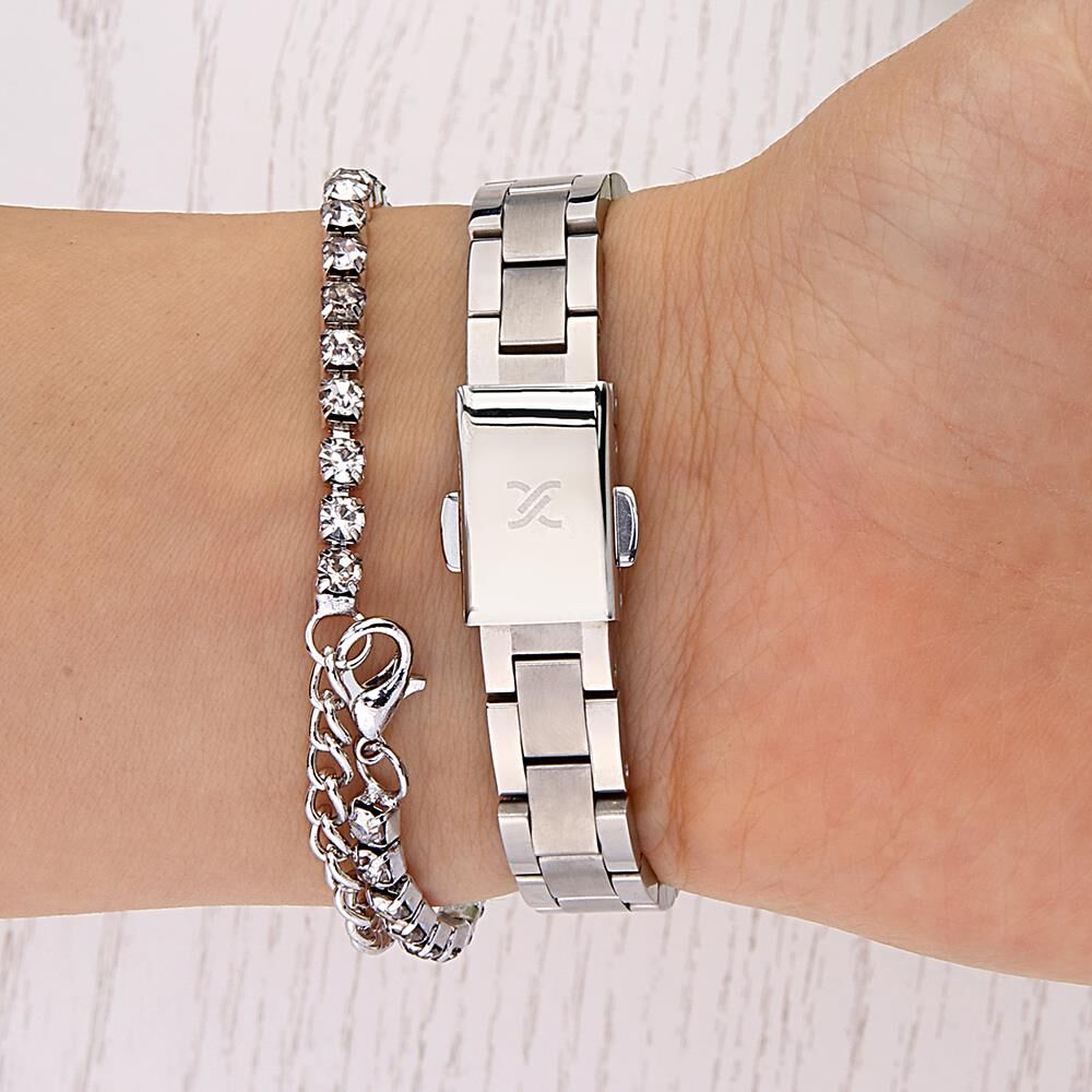 Kasa Çapı: 23 mm - Kasa Şekli: Kare - Kasa Materyali: Metal - Kasa Rengi: Metalik Gri - Kordon Materyali: Çelik - Kordon Rengi: Metalik Gri- Kadran Rengi: Gümüş Tonu - Kadran Işığı: Yok - Taş: Yok - Çalışma Şekli: Analog - Teknolojisi: Quartz - Takvim: Yok - Kronometre: Yok - Alarm: Yok - Cam Özelliği: Mineral - Özellik: Bileklik Hediyeli - Su Geçirmezlik: 3 ATM - Garanti Süresi: 2 YIL - Cinsiyet: Kadın