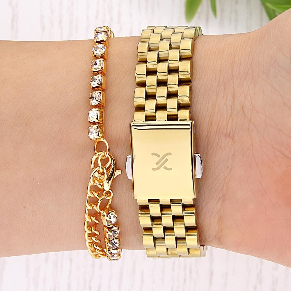 Kasa Çapı: 33 mm - Kasa Şekli: Yuvarlak - Kasa Materyali: Metal - Kasa Rengi: Altın Rengi - Kordon Materyali: Çelik - Kordon Rengi: Altın Rengi- Kadran Rengi: Gümüş Tonu - Kadran Işığı: Yok - Taş: Var - Çalışma Şekli: Analog - Teknolojisi: Quartz - Takvim: Yok - Kronometre: Yok - Alarm: Yok - Cam Özelliği: Mineral - Özellik: Bileklik Hediyeli - Su Geçirmezlik: 3 ATM - Garanti Süresi: 2 YIL - Cinsiyet: Kadın