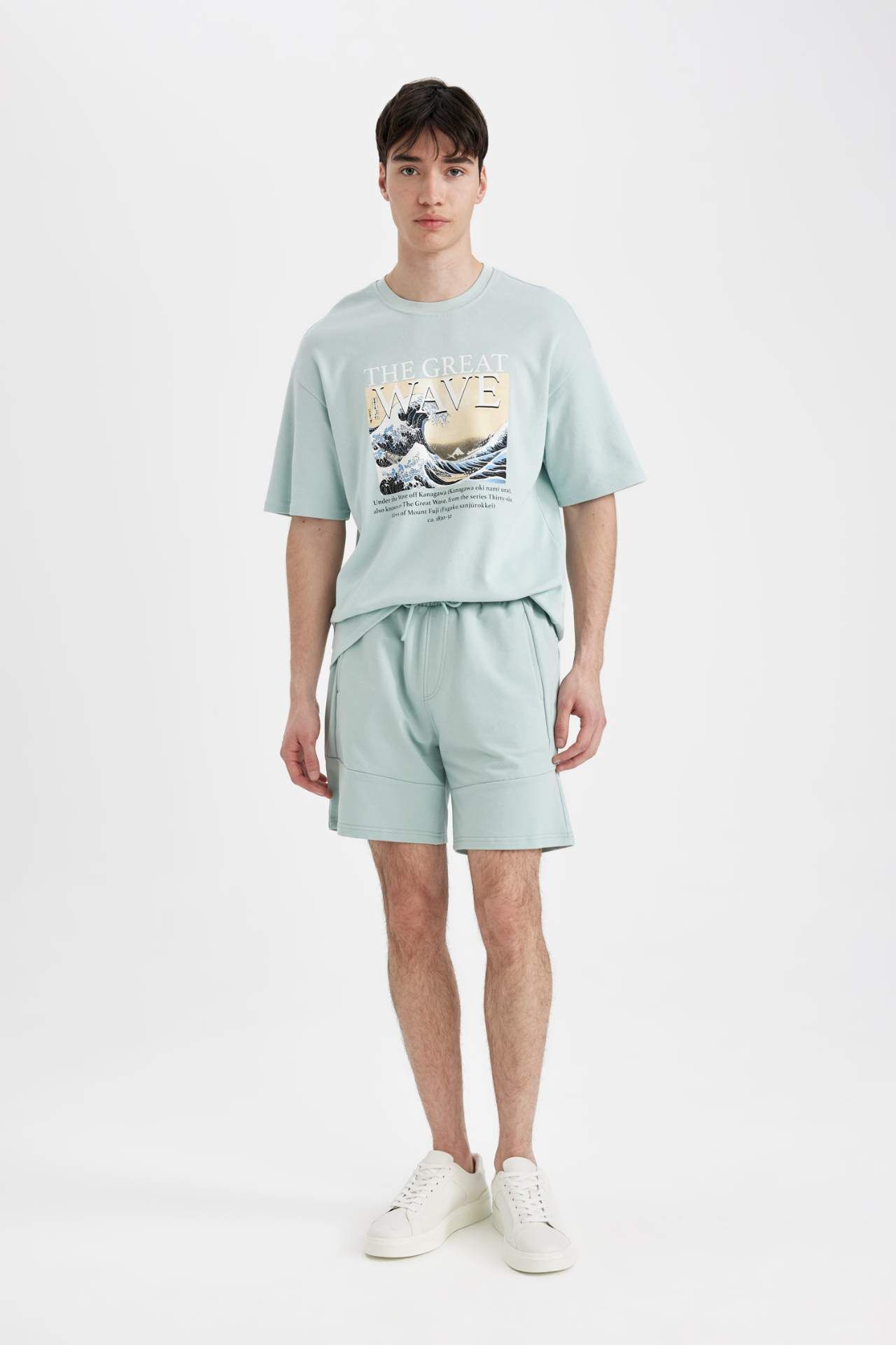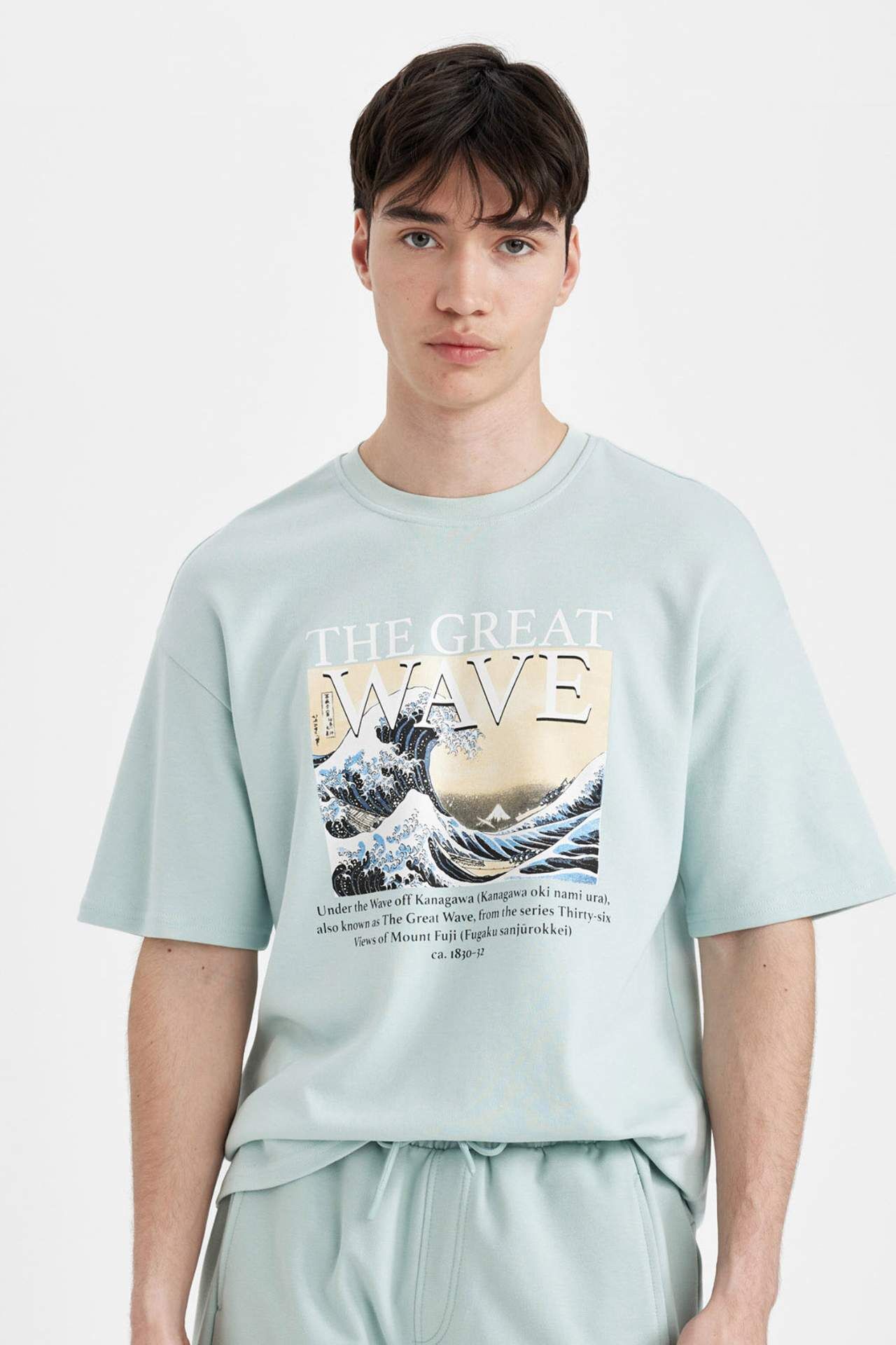 DeFactoFit Art Hokusai Comfort Fit Bisiklet Yaka Baskılı Ağır Kumaş Tişört