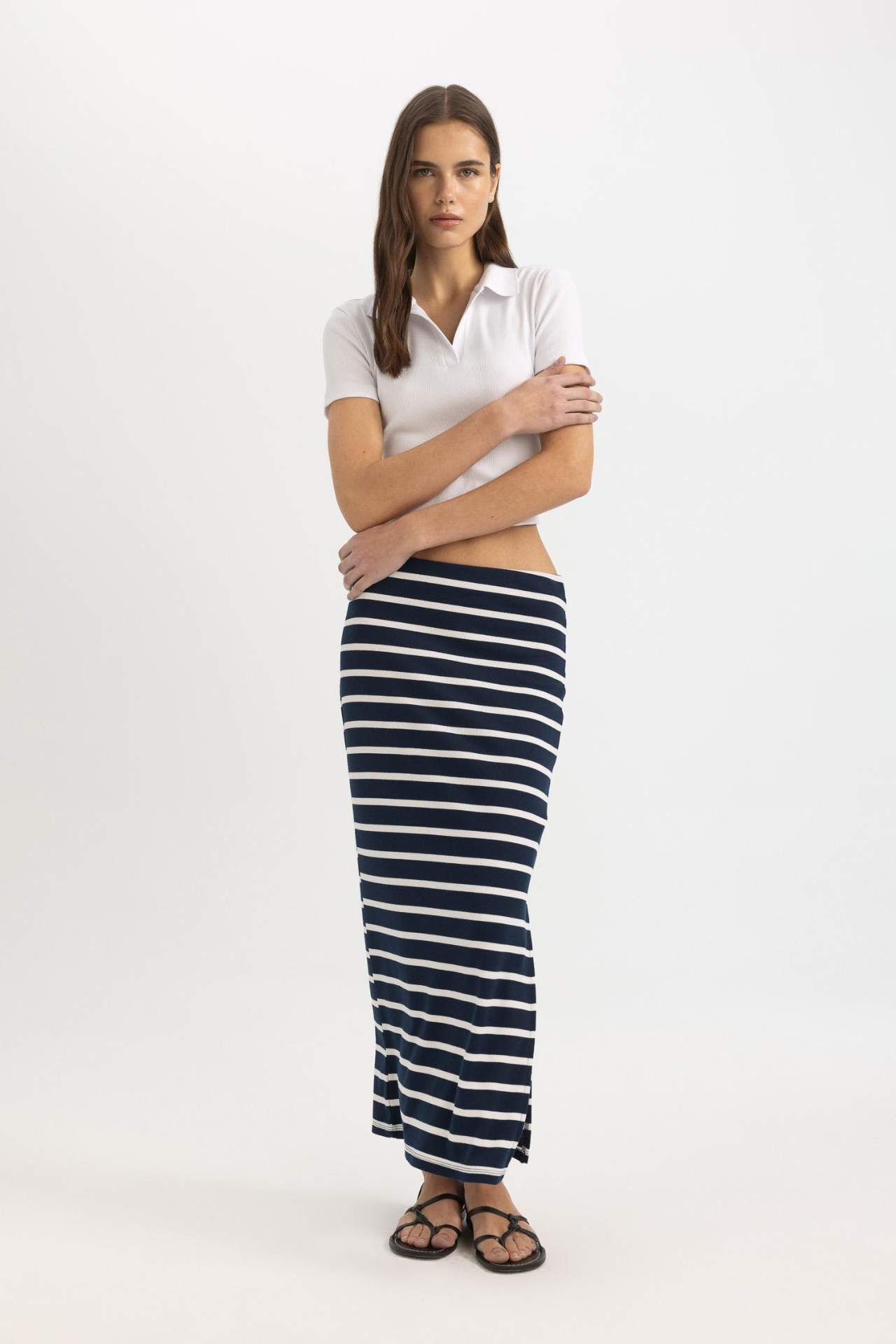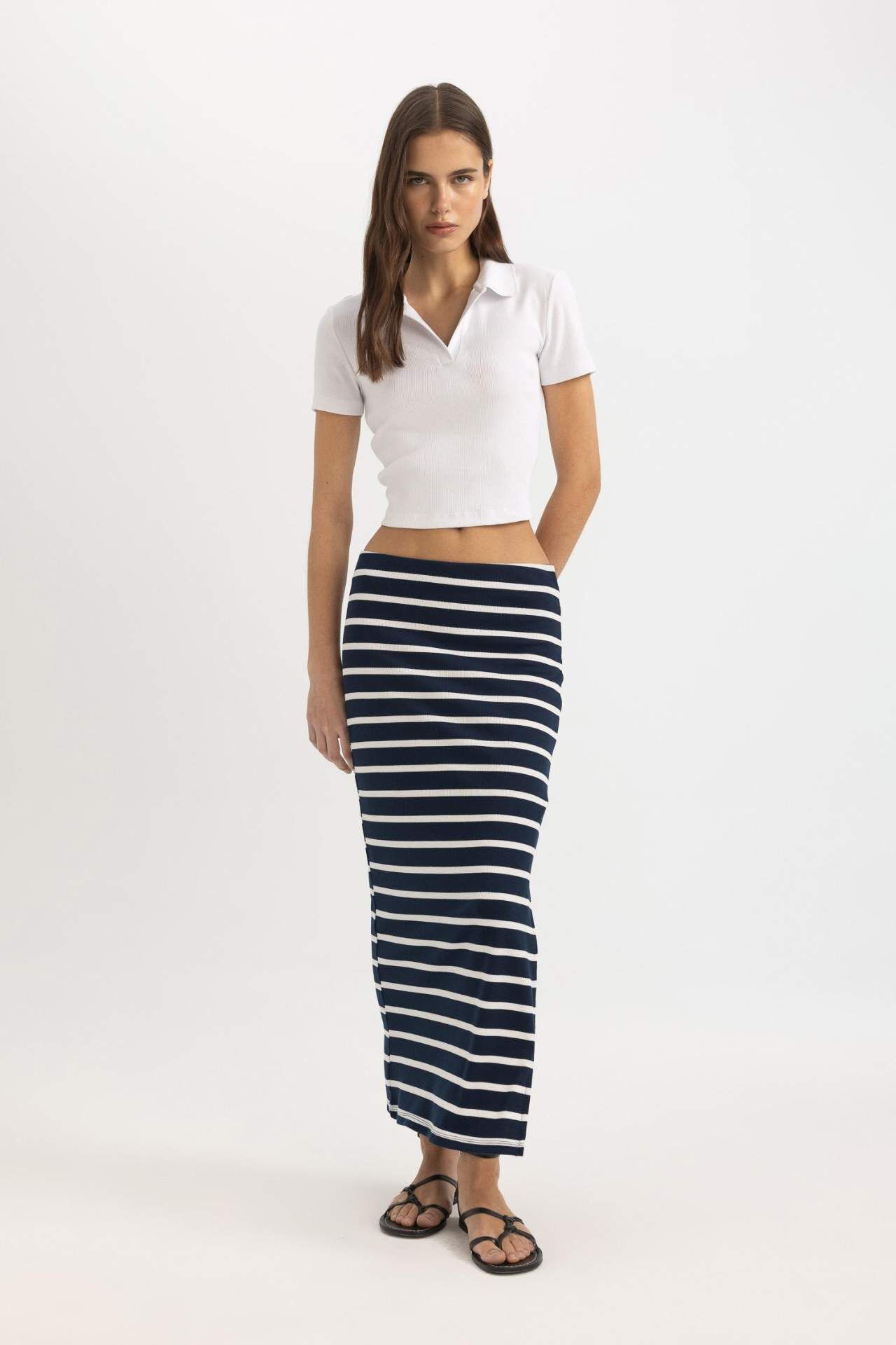 DeFactoFit Çizgili Normal Bel Fitilli Kaşkorse Midi Etek