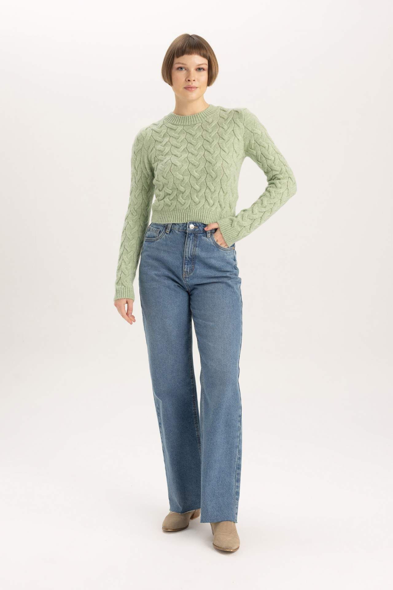 DeFactoFit Crop Bisiklet Yaka Kazak