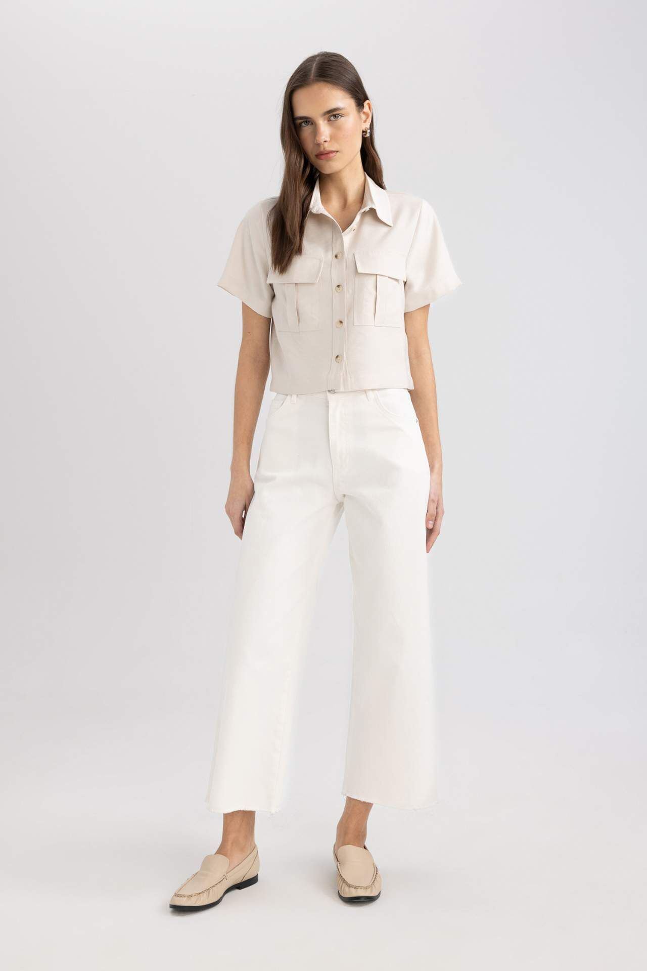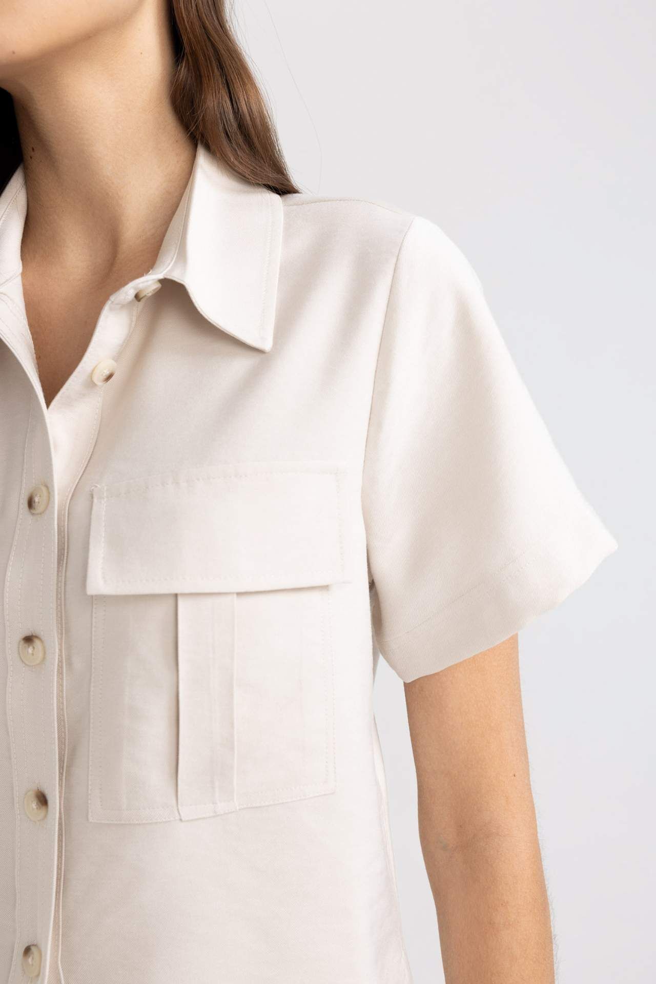 DeFactoFit Crop Gömlek Yaka Tensel Kısa Kollu Gömlek C4784AX24SMER37