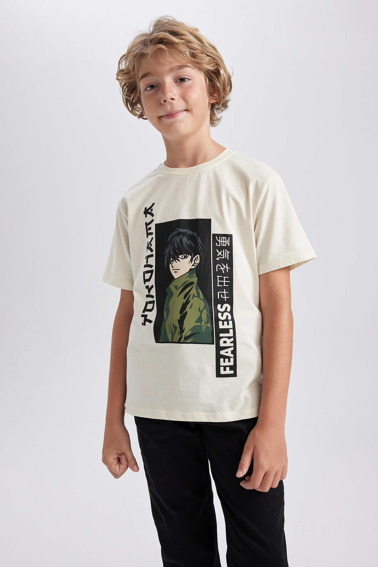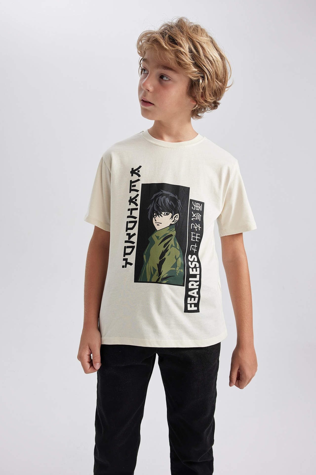 DEFACTO Erkek Çocuk Bisiklet Yaka Baskılı Kısa Kollu Tişört