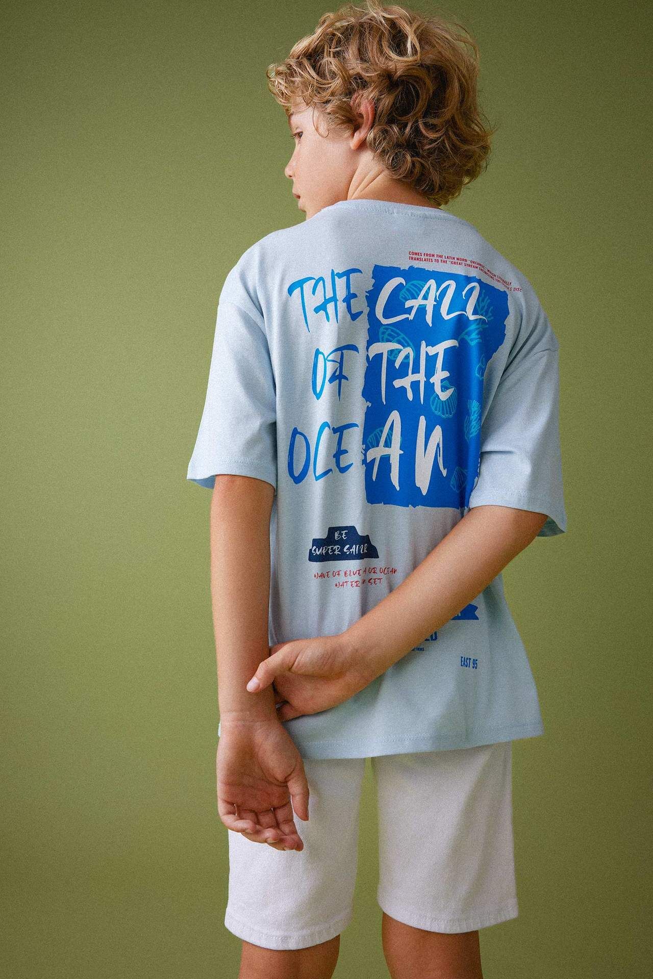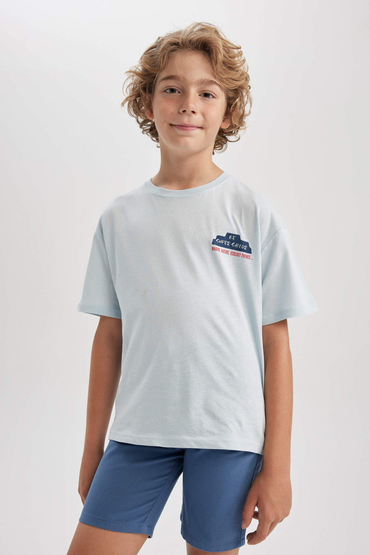 DEFACTO Erkek Çocuk Oversize Fit Bisiklet Yaka Baskılı Kısa Kollu Tişört