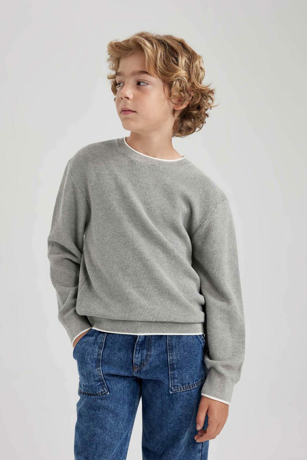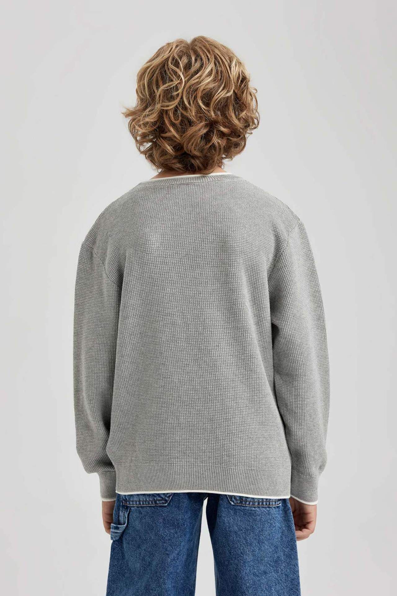 DEFACTO Erkek Çocuk Regular Fit Bisiklet Yaka Pamuklu Kazak U8991A623WNGR210