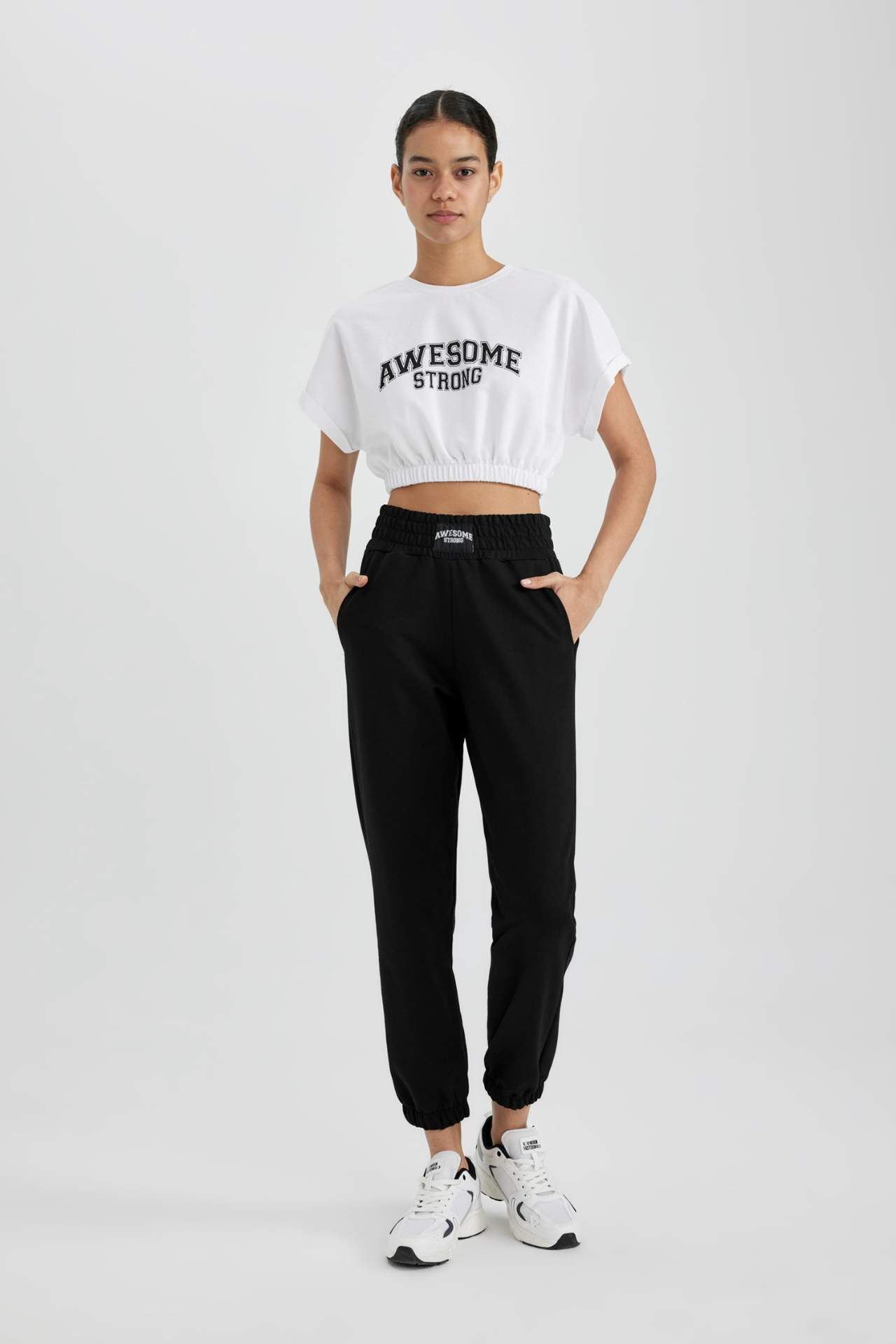 DeFactoFit Crop Bisiklet Yaka Slogan Baskılı Sporcu Kısa Kollu Tişört A2423AX24SPWT34