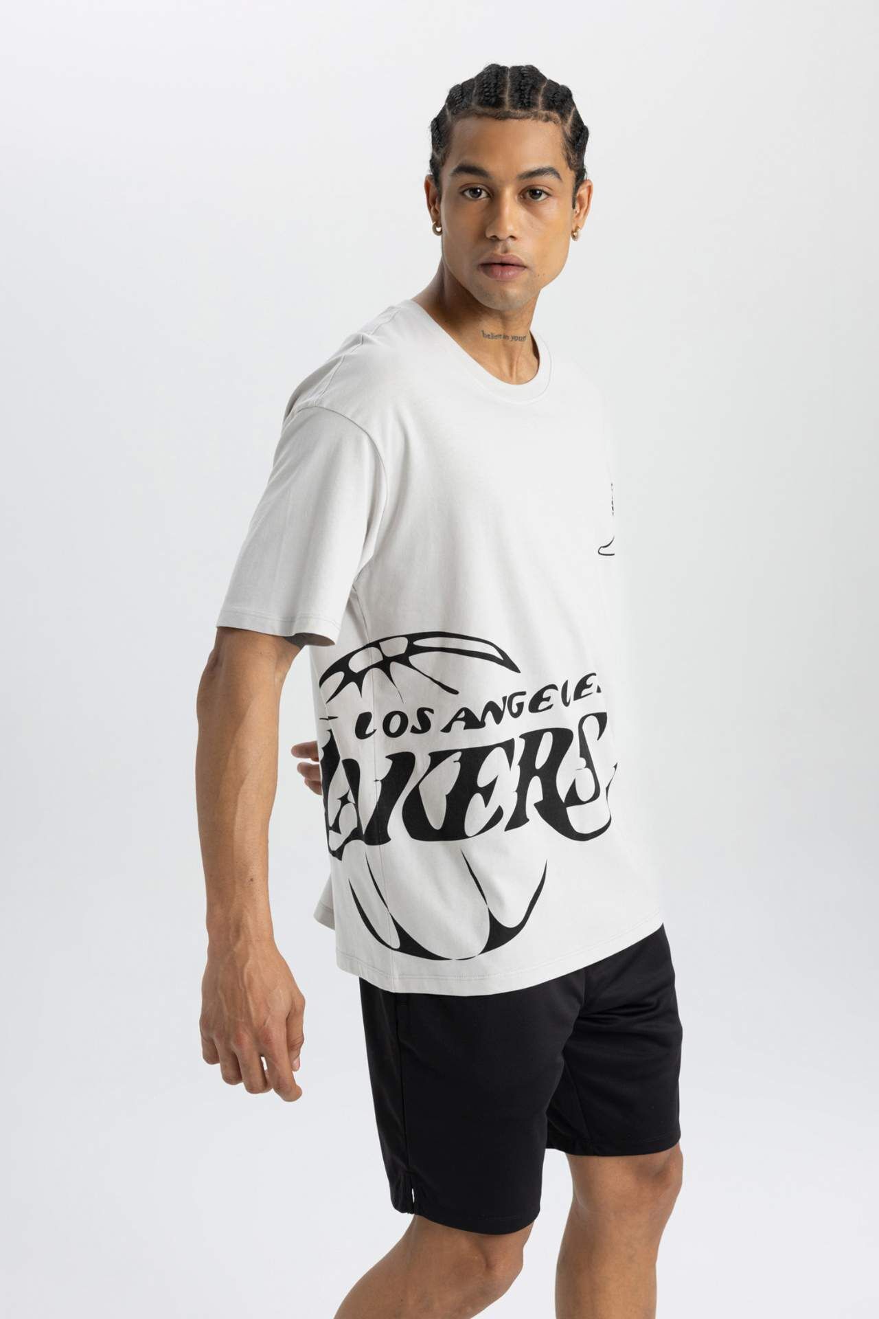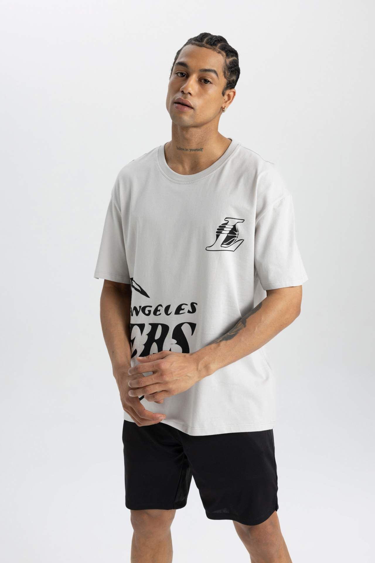 DeFactoFit NBA Los Angeles Lakers Boxy Fit Bisiklet Yaka Tişört