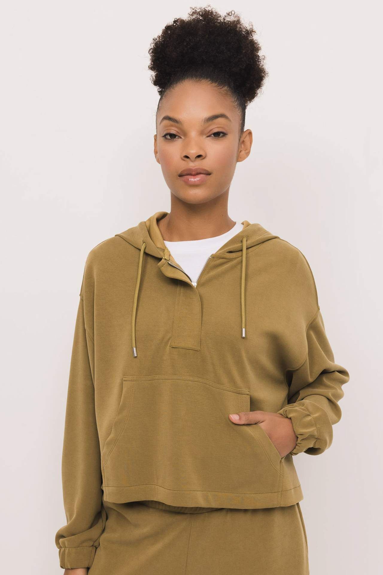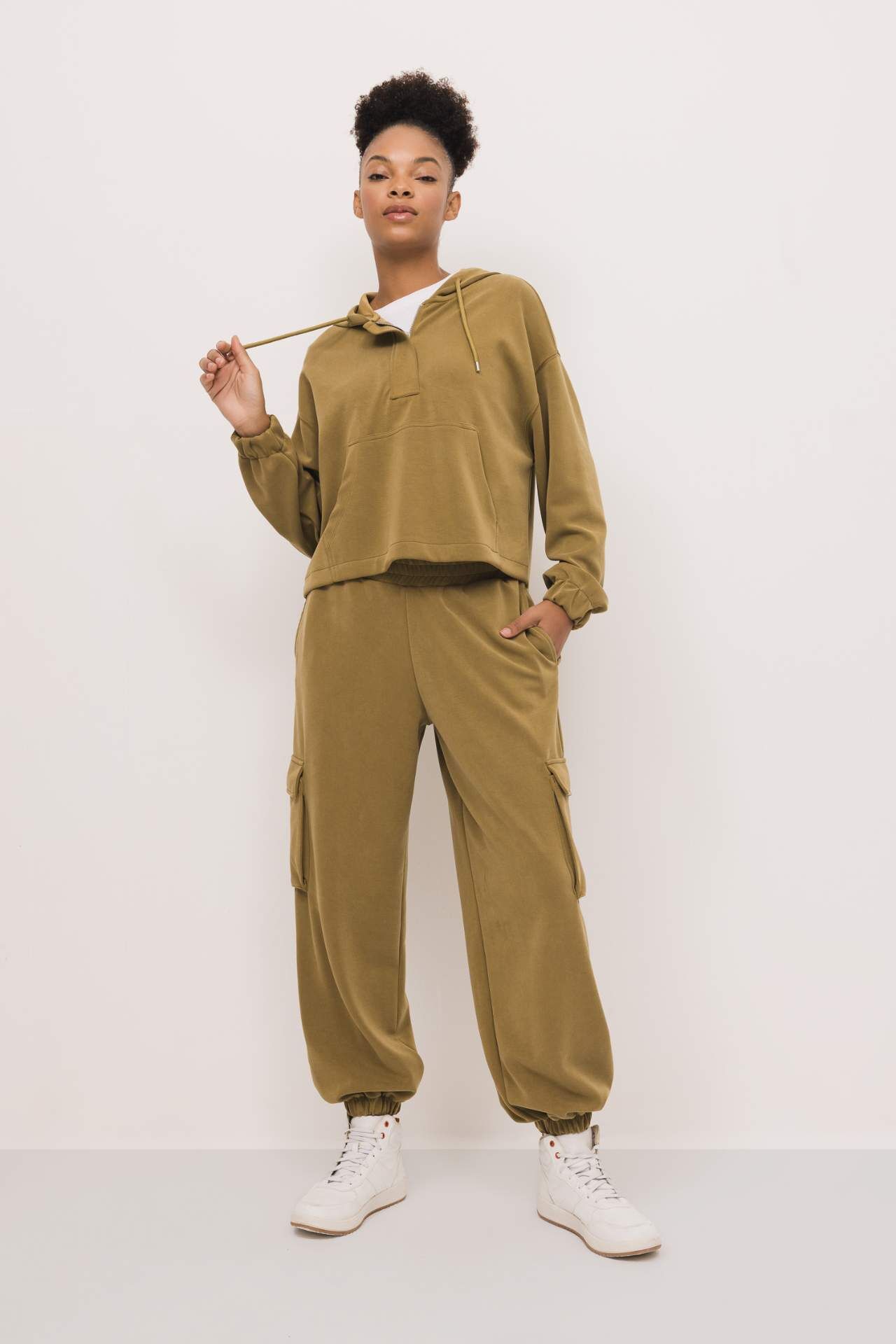 Son zamanların en trend parçası cepli, kapüşonlu mükemmel spor tasarımıyla fermuarlı sweatshirt dolabındaki yerini hemen almalı! Mevsim geçişlerinin, serin havaların en önemli parçası oversize fit tasarımıyla, tayt, jean ve jogger eşofmanlarla tamamlayabileceğiniz, kullanışlı modeliyle DeFacto Kadın DeFactoFit Oversize Fit Modal Kapüşonlu Sporcu Sweatshirt. Elastan 5%,Modal 48%,Poliester 47% Manken Bedeni: Göğüs: 80 Boy: 1,77 Basen: 90 Bel: 64