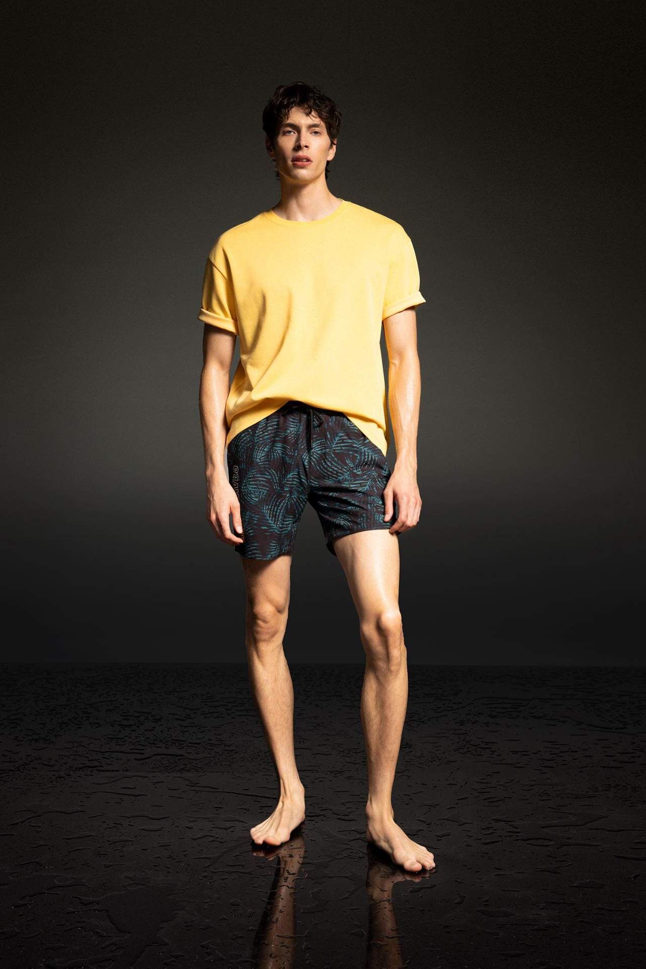 DeFactoFit Regular Fit Baskılı Esnek Dokulu Kısa Boy Deniz Şortu A4185AX24HSBK81