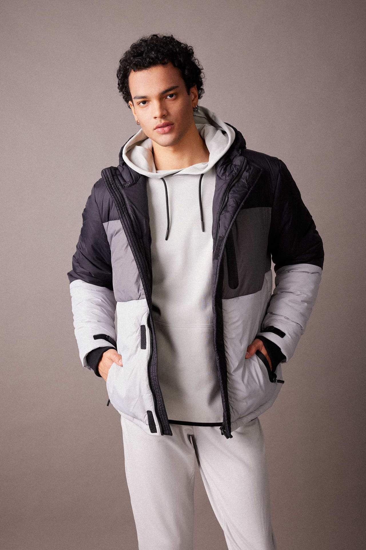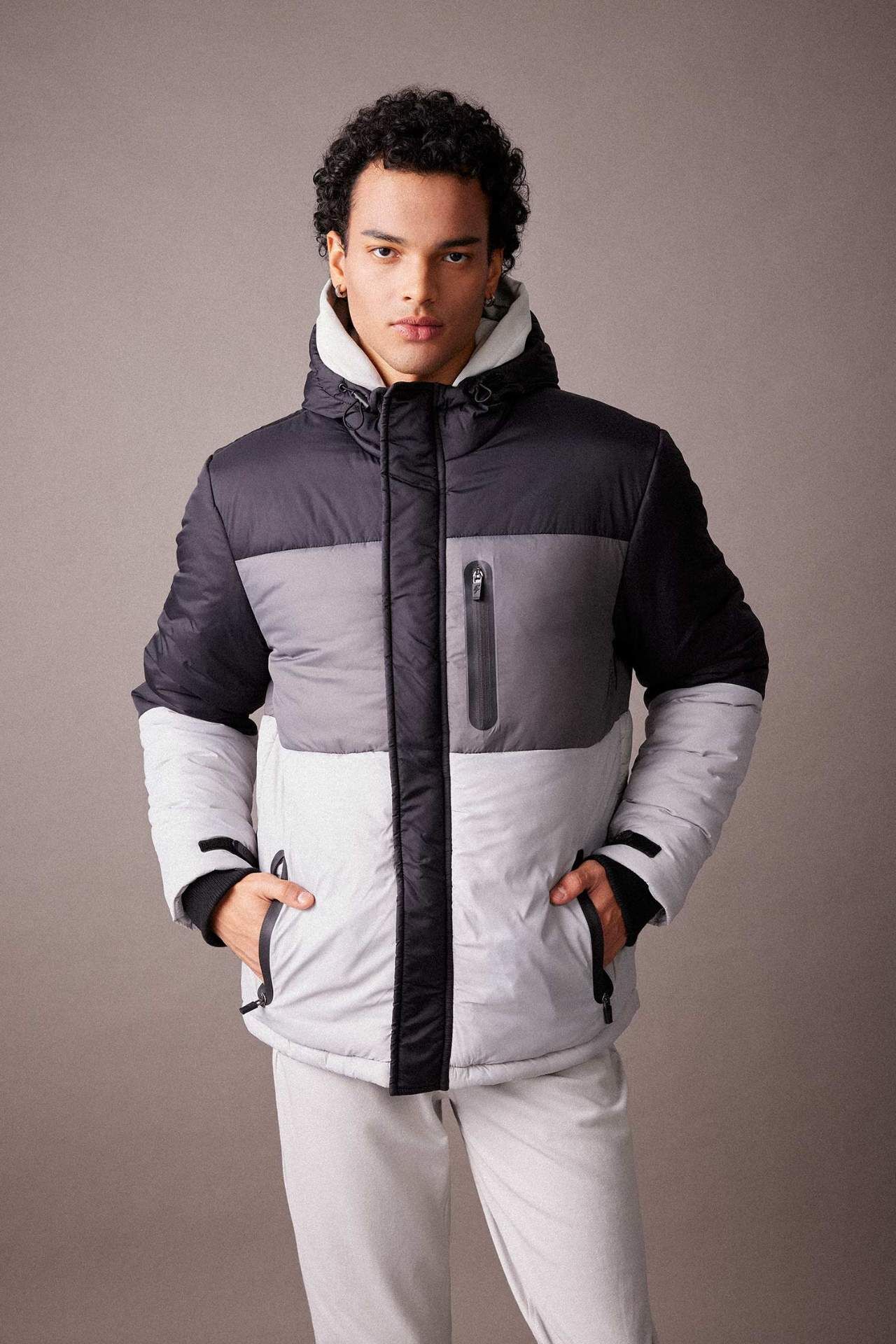 DeFactoFit Slim Fit Kapüşonlu Polar Astarlı Mont
