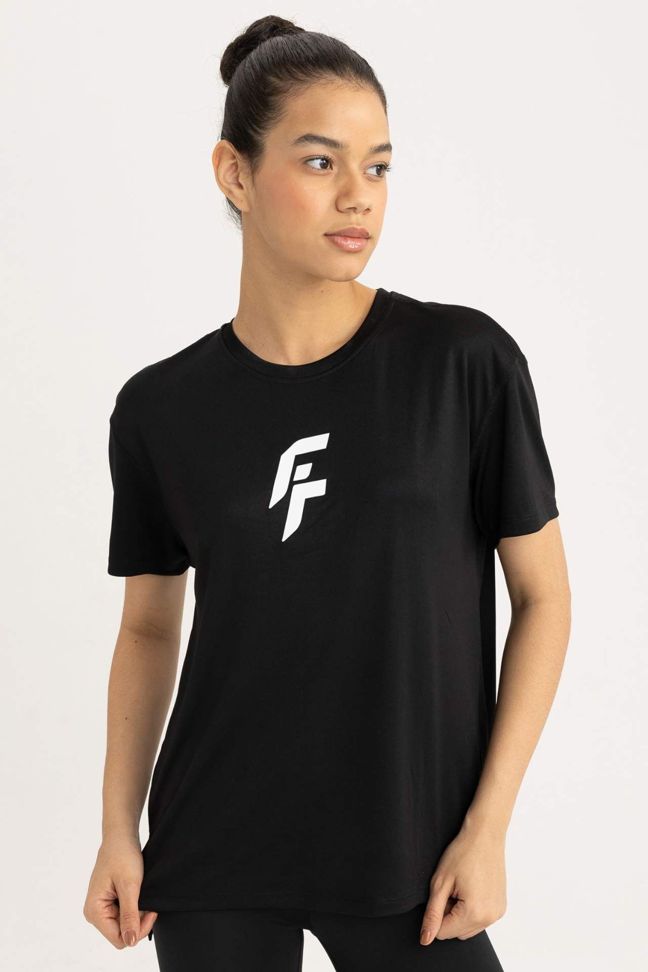 DeFactoFit Standart Fit Bisiklet Yaka Sporcu Kısa Kollu Ağır Kumaş Tişört A9023AX24SPBK81