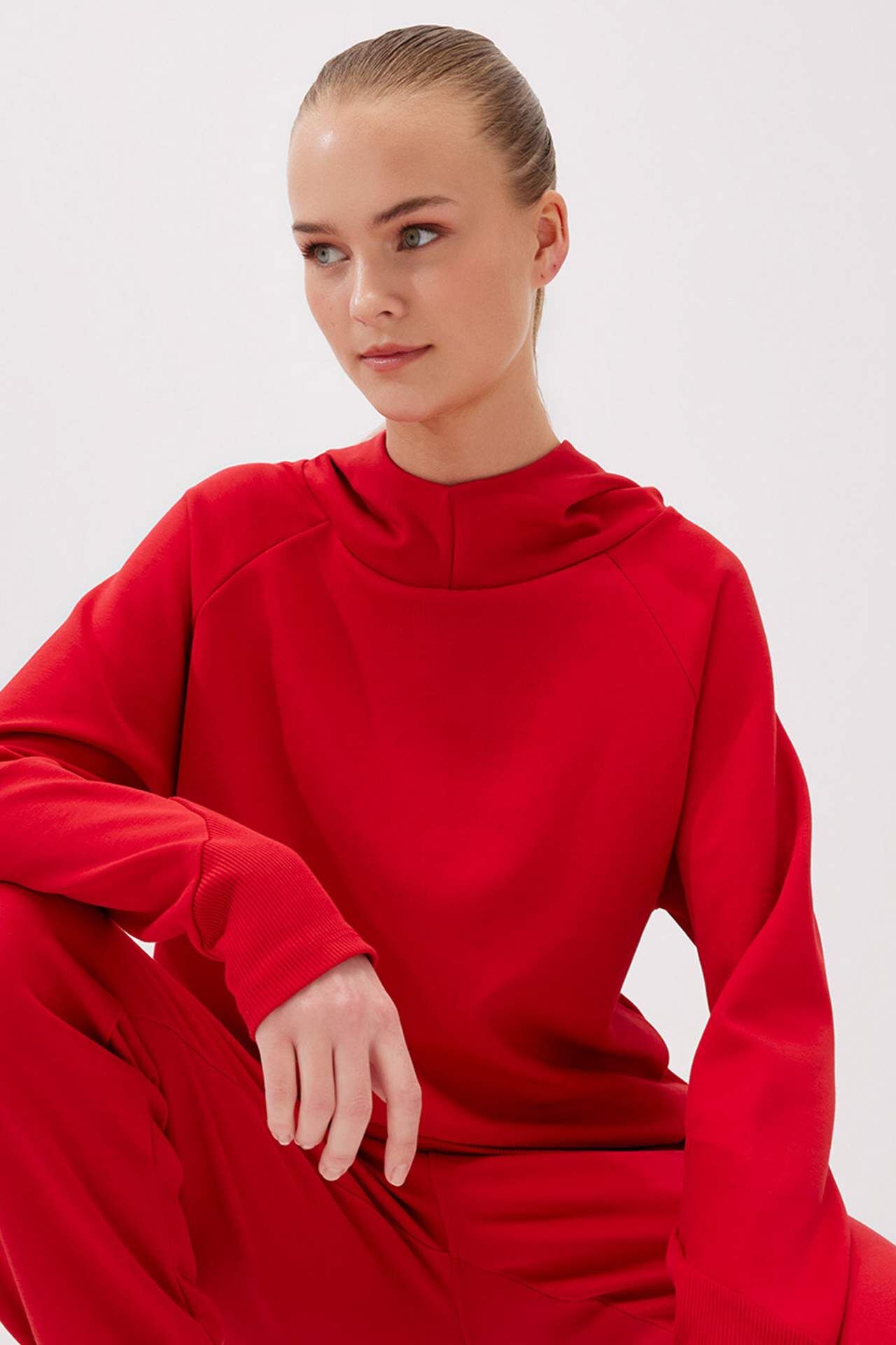 DeFactoFit Standart Fit Kapüşonlu Skuba Dalgıç Kumaş Sweatshirt