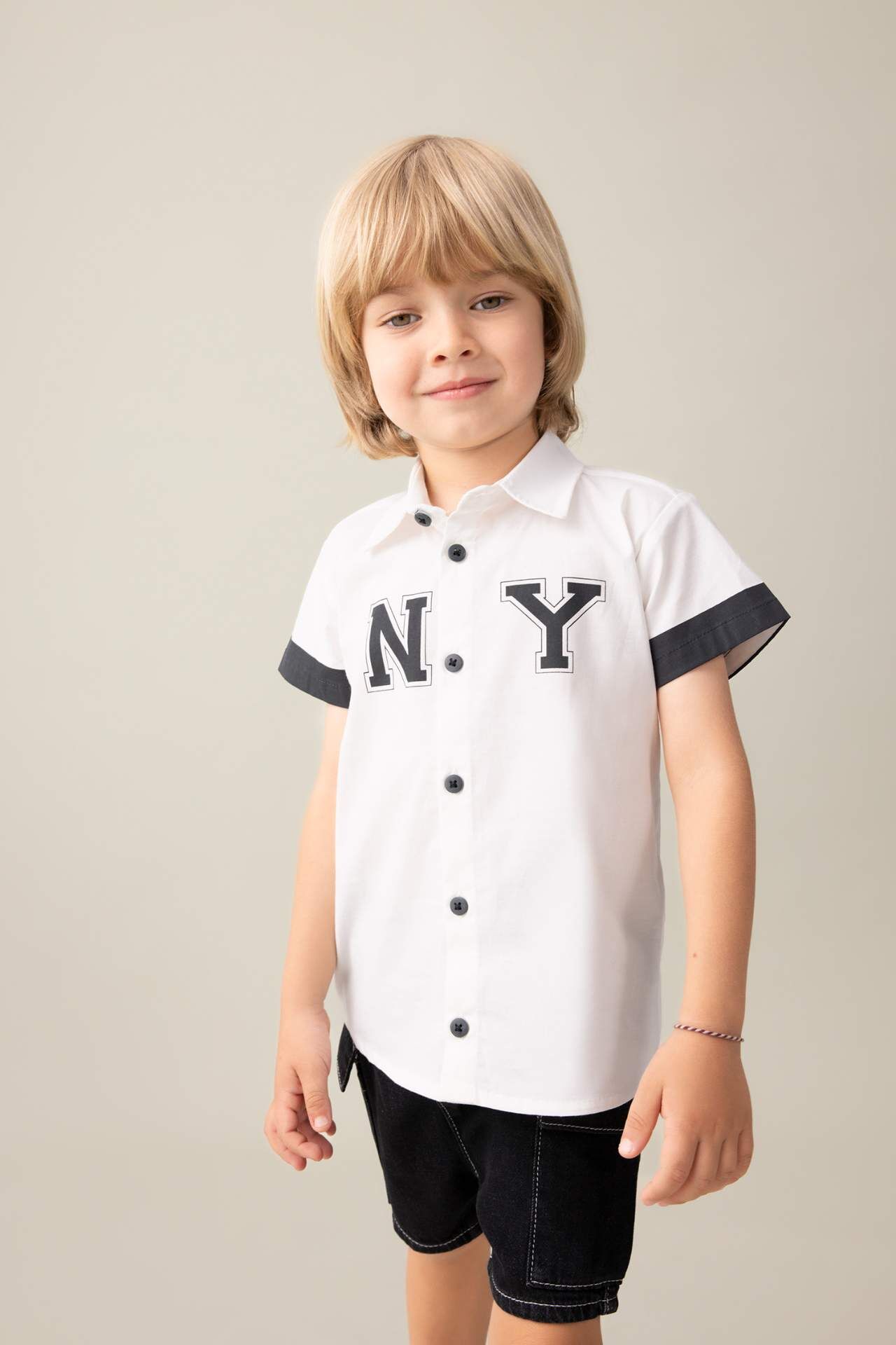 DeFactoFit Erkek Bebek Poplin Kısa Kollu Gömlek