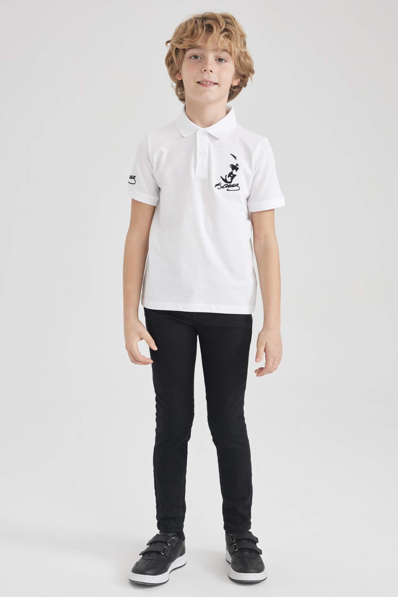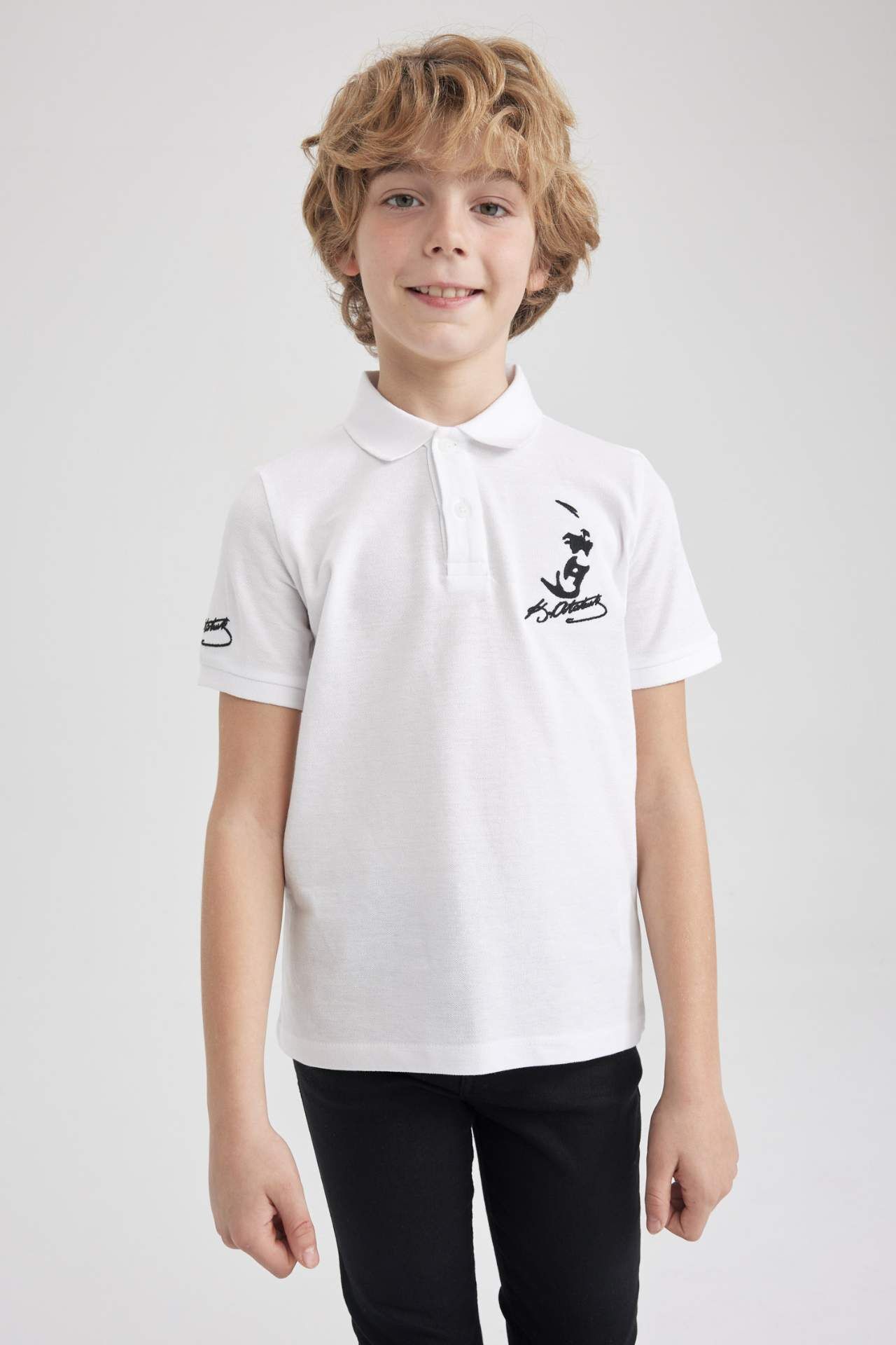 DeFactoFit Erkek Çocuk Atatürk Baskılı Kısa Kollu Polo Tişört Beyaz
