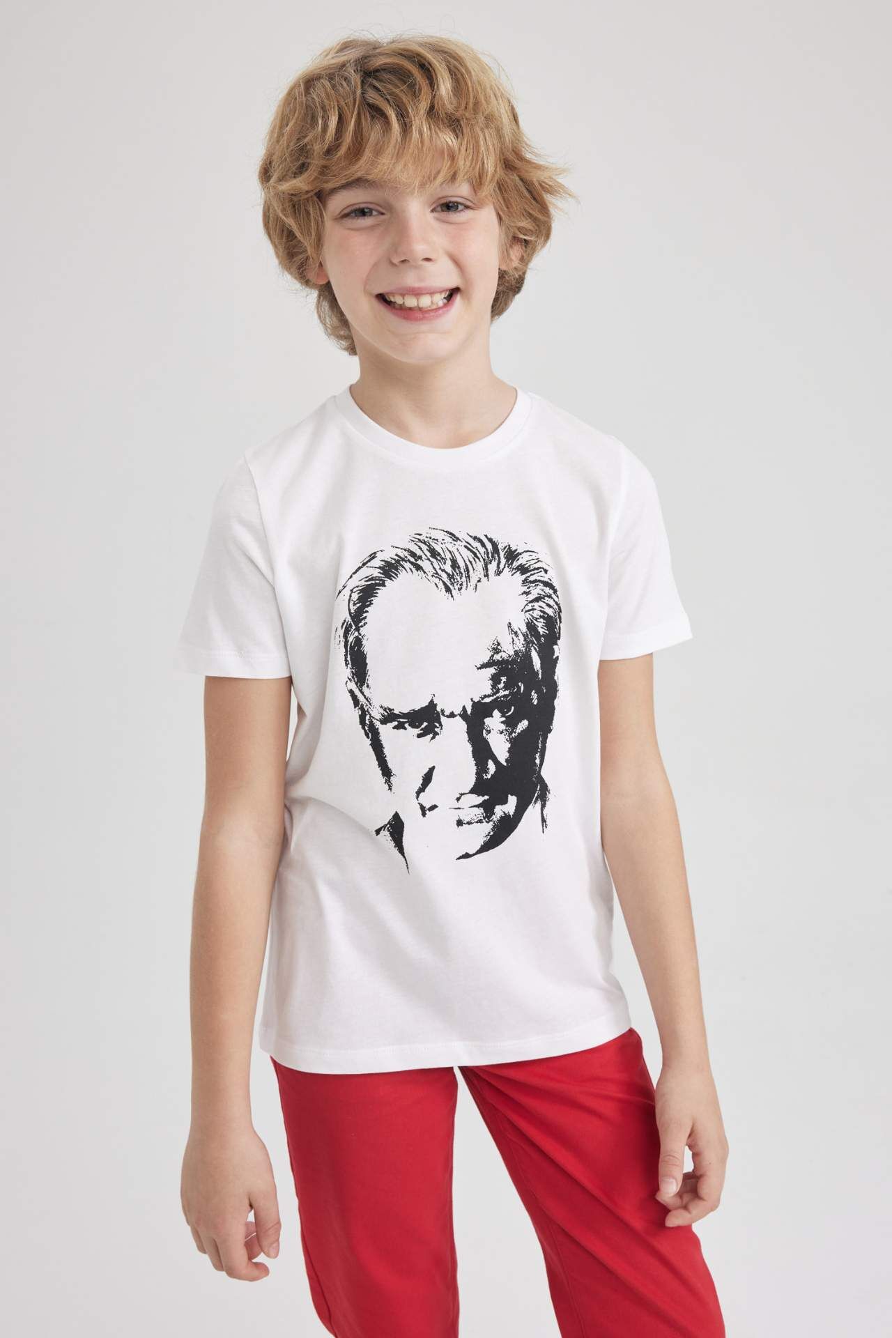 DeFactoFit Erkek Çocuk Atatürk Baskılı Pamuklu Penye Kısa Kollu Tişört Beyaz