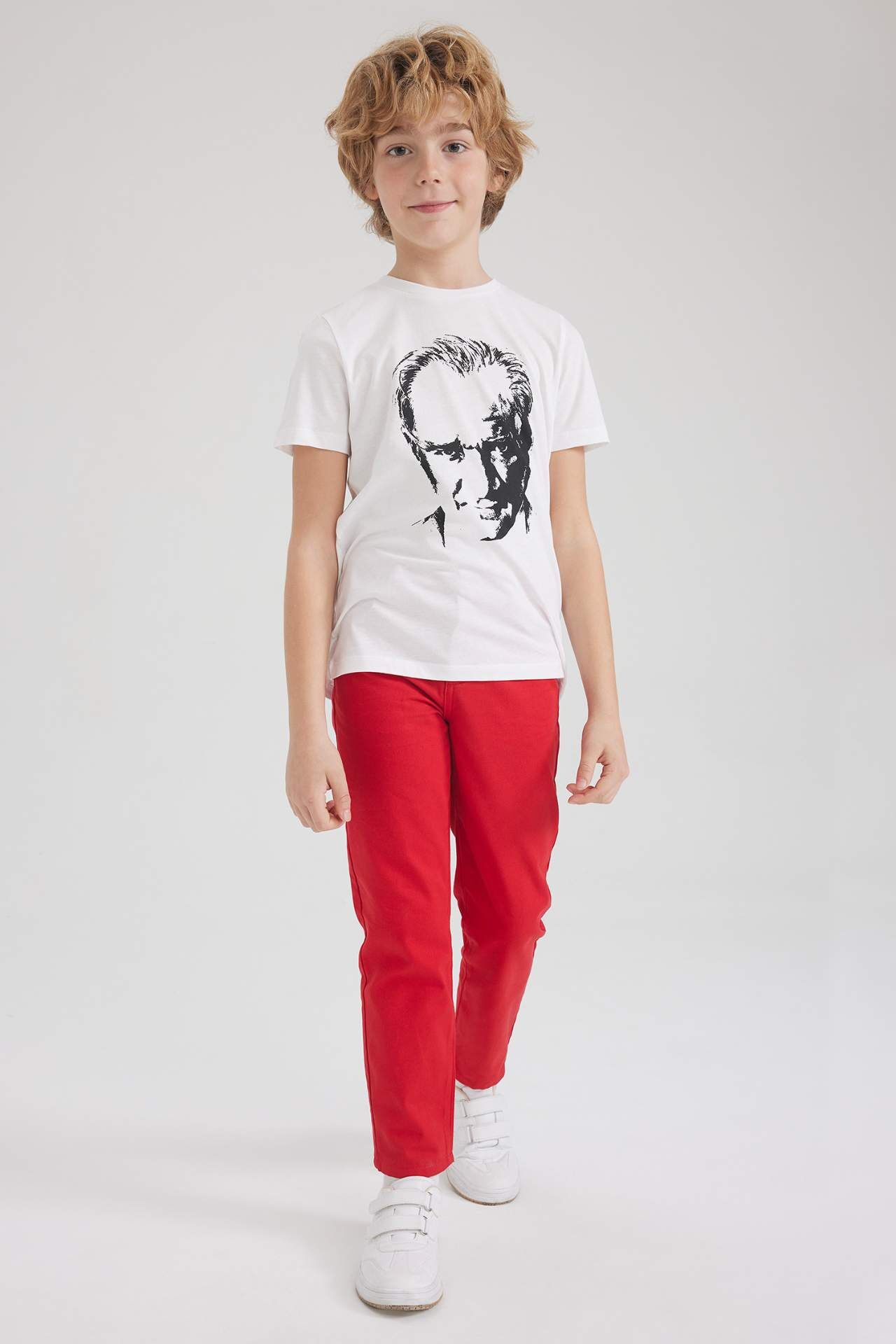 Özel günleriniz için tasarlanmış özel koleksiyonu ile 29 Ekim, 23 Nisan, 30 Ağustos bayramlarında çocuklarınızın bu anlamlı günde severek giyecekleri okul gösterileri, anma törenlerinde tercih edeceğiniz ATATÜRK baskılı, pamuklu kumaşı, bisiklet yaka, kısa kollu modeli ile en özel günlerinizde sizinle olacak DeFacto Erkek Çocuk 23 Nisan Atatürk Baskılı Pamuklu Penye Kısa Kollu Tişört. Pamuk 100%,Pamuk 100% Manken Bedeni: Göğüs: 0 Boy: 1,37 Basen: 0 Bel: 0