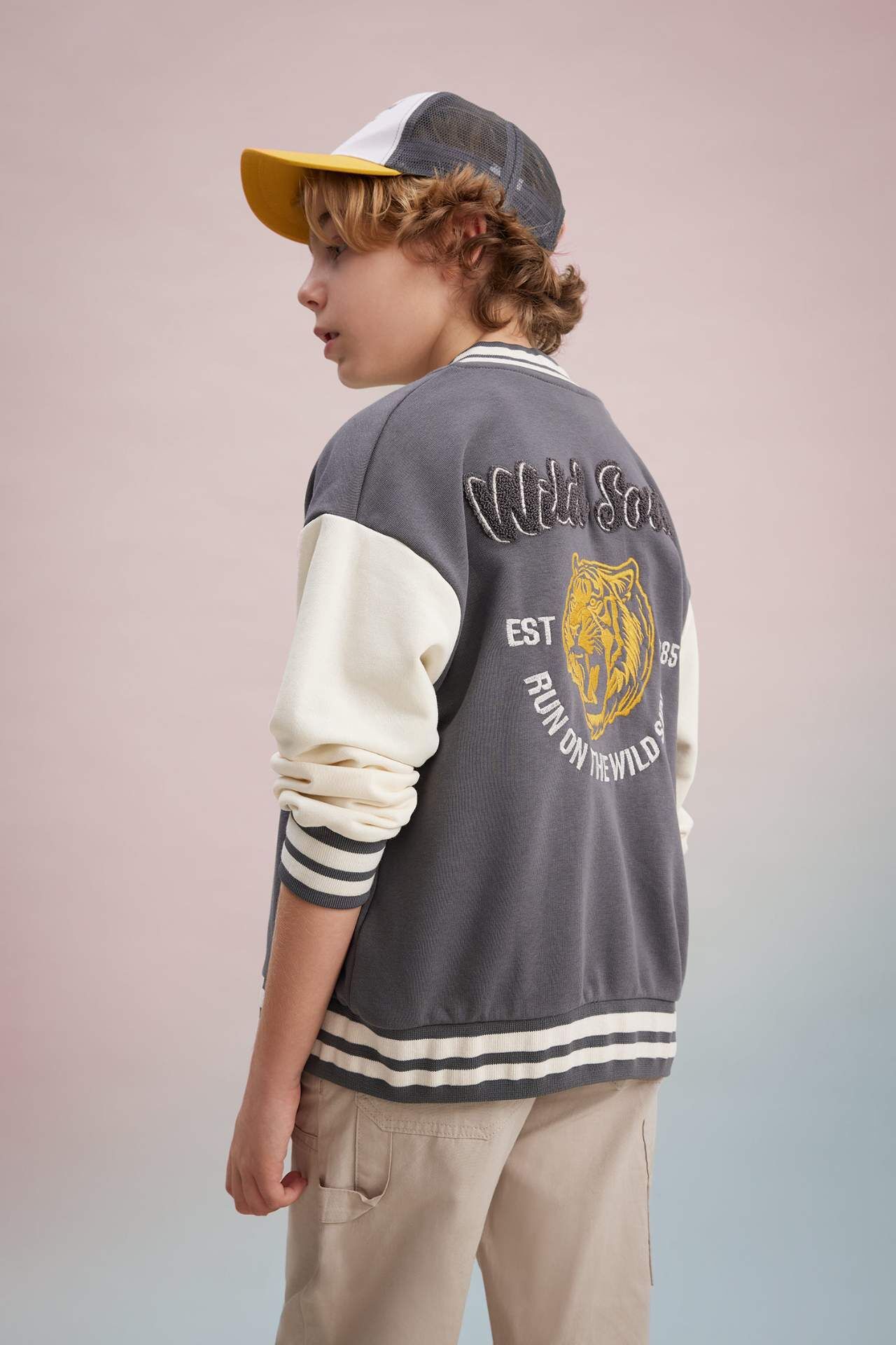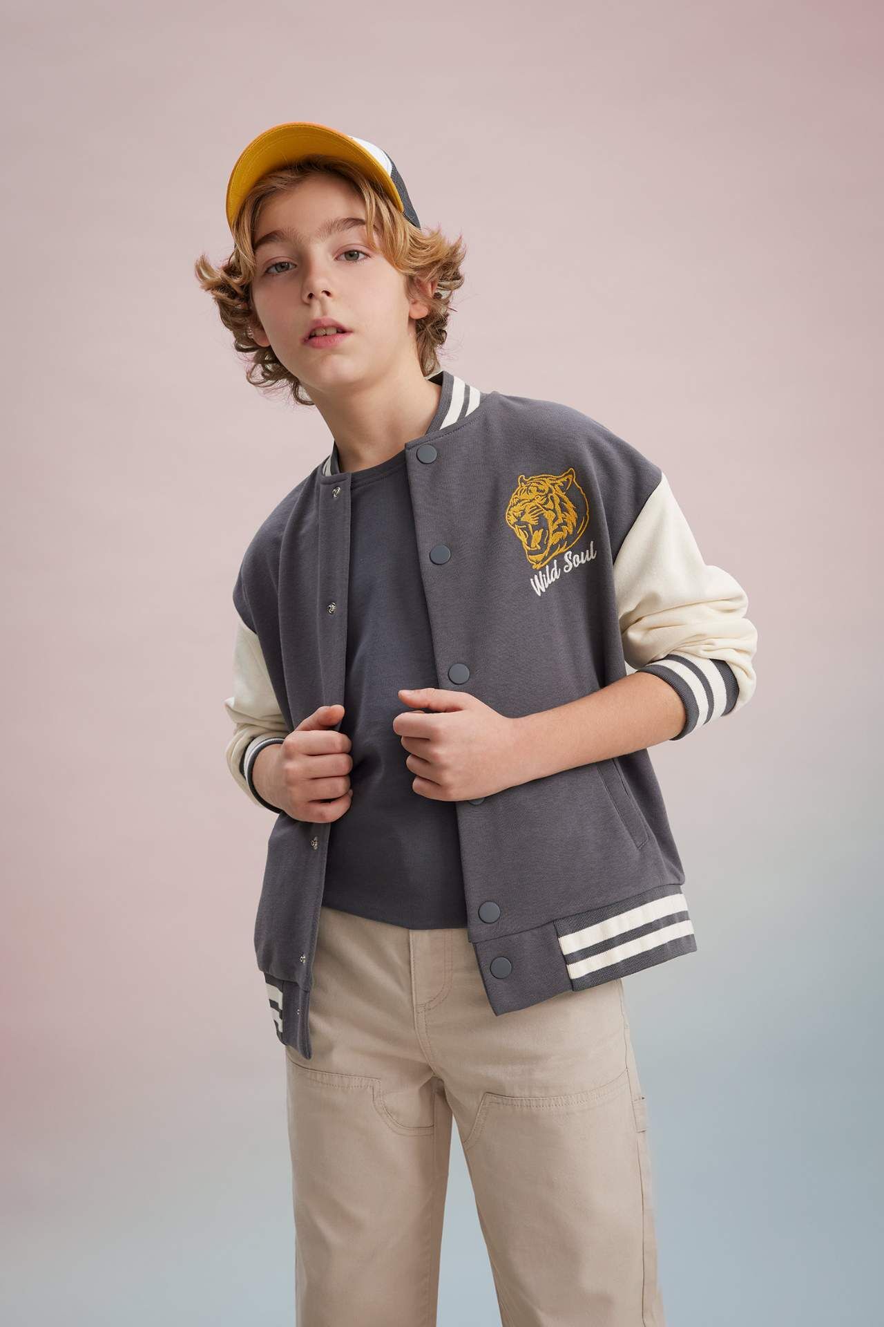 DeFactoFit Erkek Çocuk Baskılı Bomber Yaka Kolej Hırka