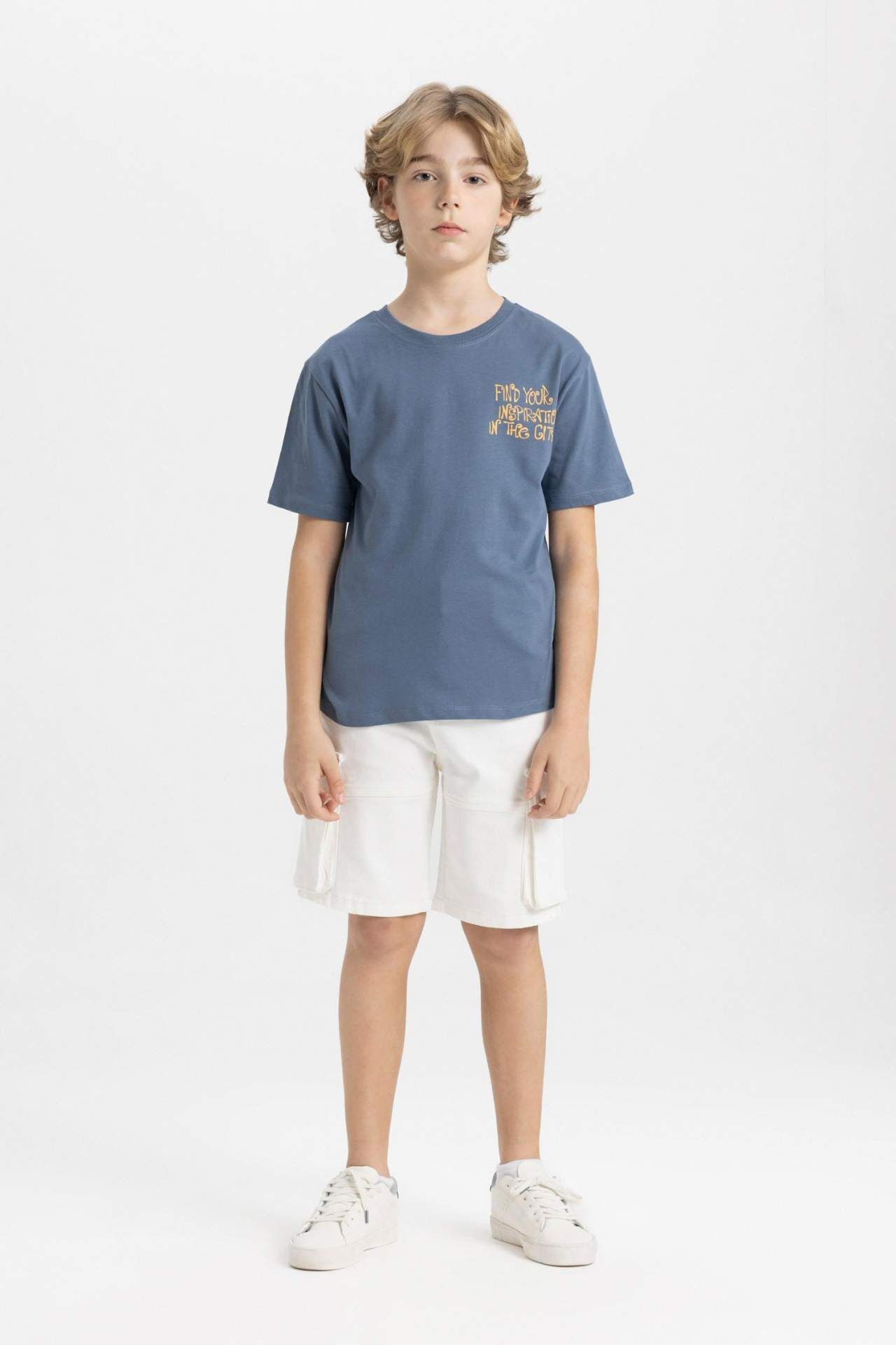 Erkek çocuklar için tasarlanan bu regular fit tişört, bisiklet yaka detayı ve baskılı deseniyle dikkat çekiyor. Kısa kollu tasarımıyla rahat bir kullanım sunarken, şık görünümüyle de öne çıkıyor. Kaliteli kumaşı ve özenli dikişleriyle uzun süreli kullanım sağlar. Stil sahibi çocuklar için ideal bir seçim. Pamuk 100%,Pamuk 100%