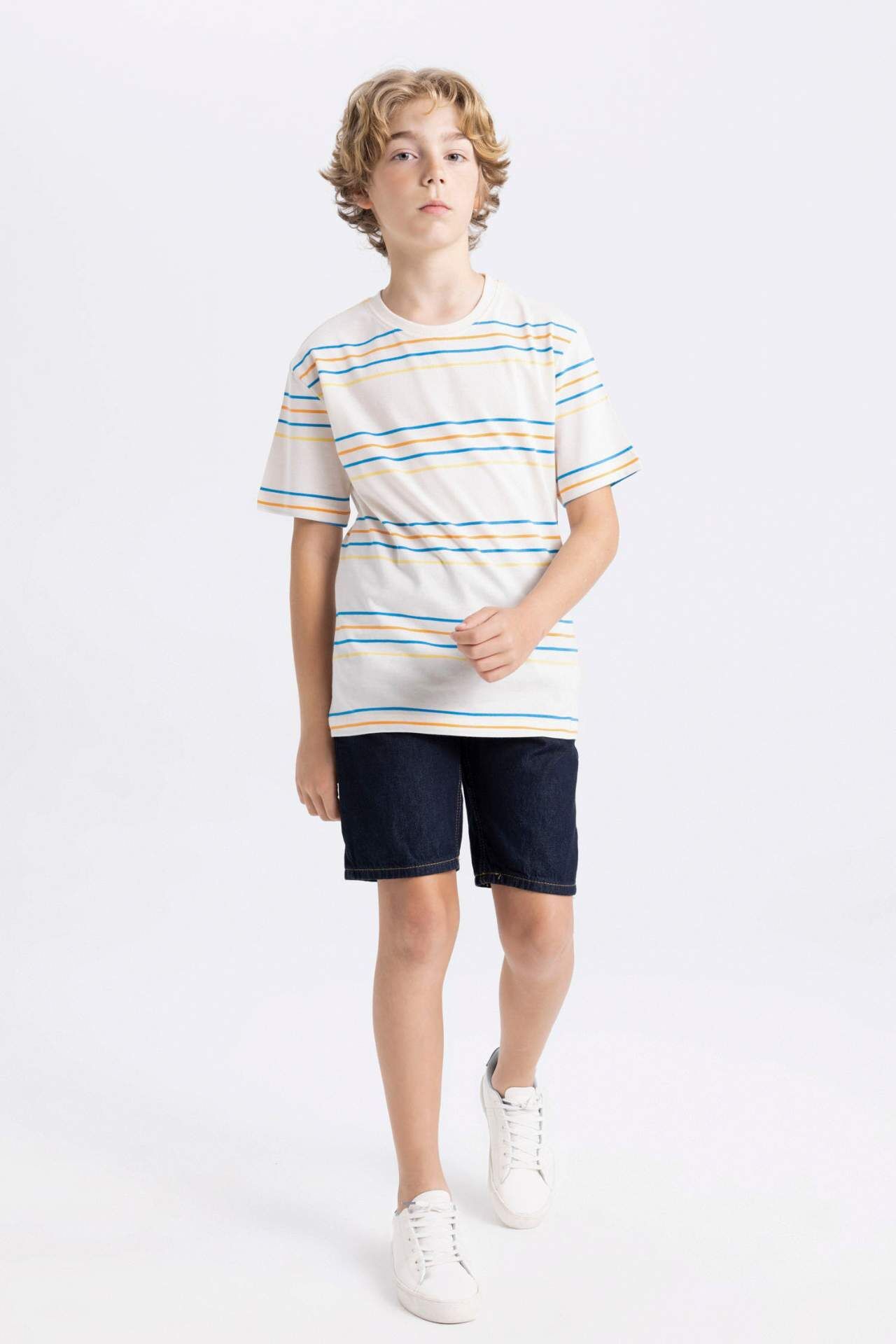 Erkek Çocuk Regular Fit Bisiklet Yaka Çizgili Kısa Kollu Tişört: Şıklığı ve rahatlığı bir arada sunan bu tişört, her tarza uyum sağlar. Kaliteli kumaşı ve şık çizgileri ile günlük kullanımda vazgeçilmezdir. Her zaman şık ve özgün görünmek isteyen erkek çocuklar için ideal bir seçimdir. Pamuk 100%,Pamuk 100% Manken Bedeni: Göğüs: 0 Boy: 1,37 Basen: 0 Bel: 0