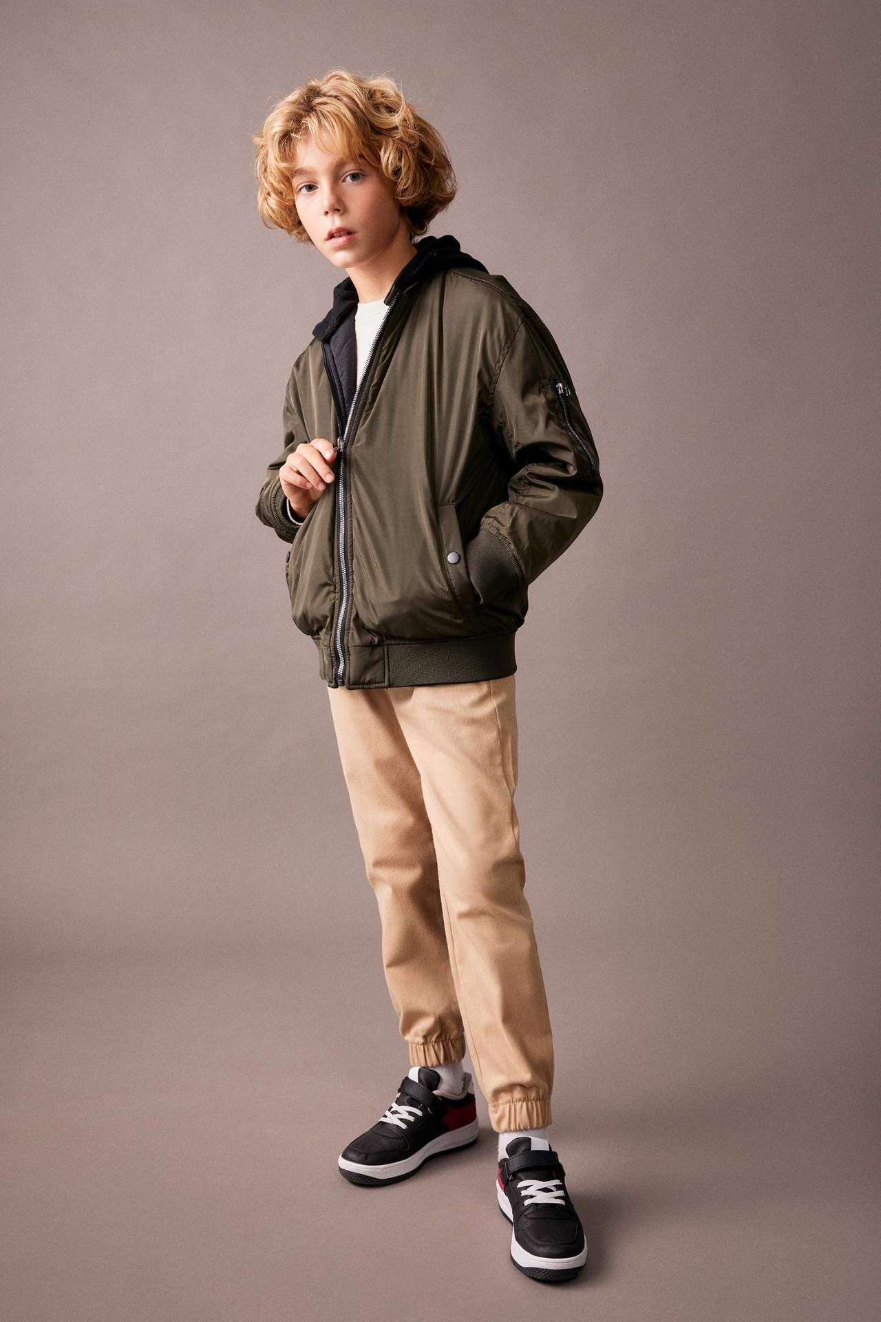 Erkek Çocuk Bomber Mont Ceket, çift taraflı tasarımı ve çıkarılabilir kapüşonuyla farklı stillere uyum sağlar. Kolej yaka ve fermuarlı cepleriyle modern ve pratik bir kullanım sunar. Hafif yapısı sayesinde mevsimlik rahatlık sağlar. Naylon 100%,Poliester 100%,Poliester 100%