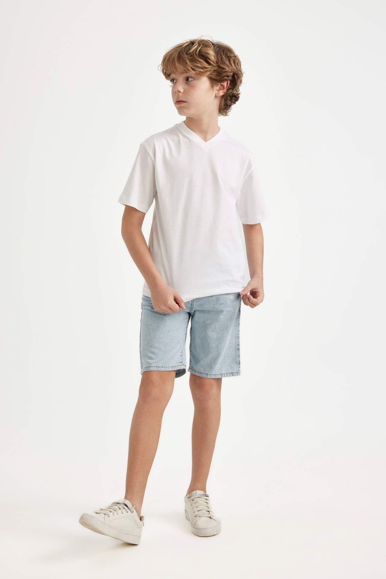 Beli lastikli tasarımıyla kolay giyilip çıkarılabilen jean şort, çocuklara gün boyu konfor ve hareket özgürlüğü sunar. Dayanıklı kumaşıyla hem oyun hem günlük kullanım için idealdir. Pamuk 100%,Pamuk 100% Manken Bedeni: Göğüs: 0 Boy: 1,37 Basen: 0 Bel: 0