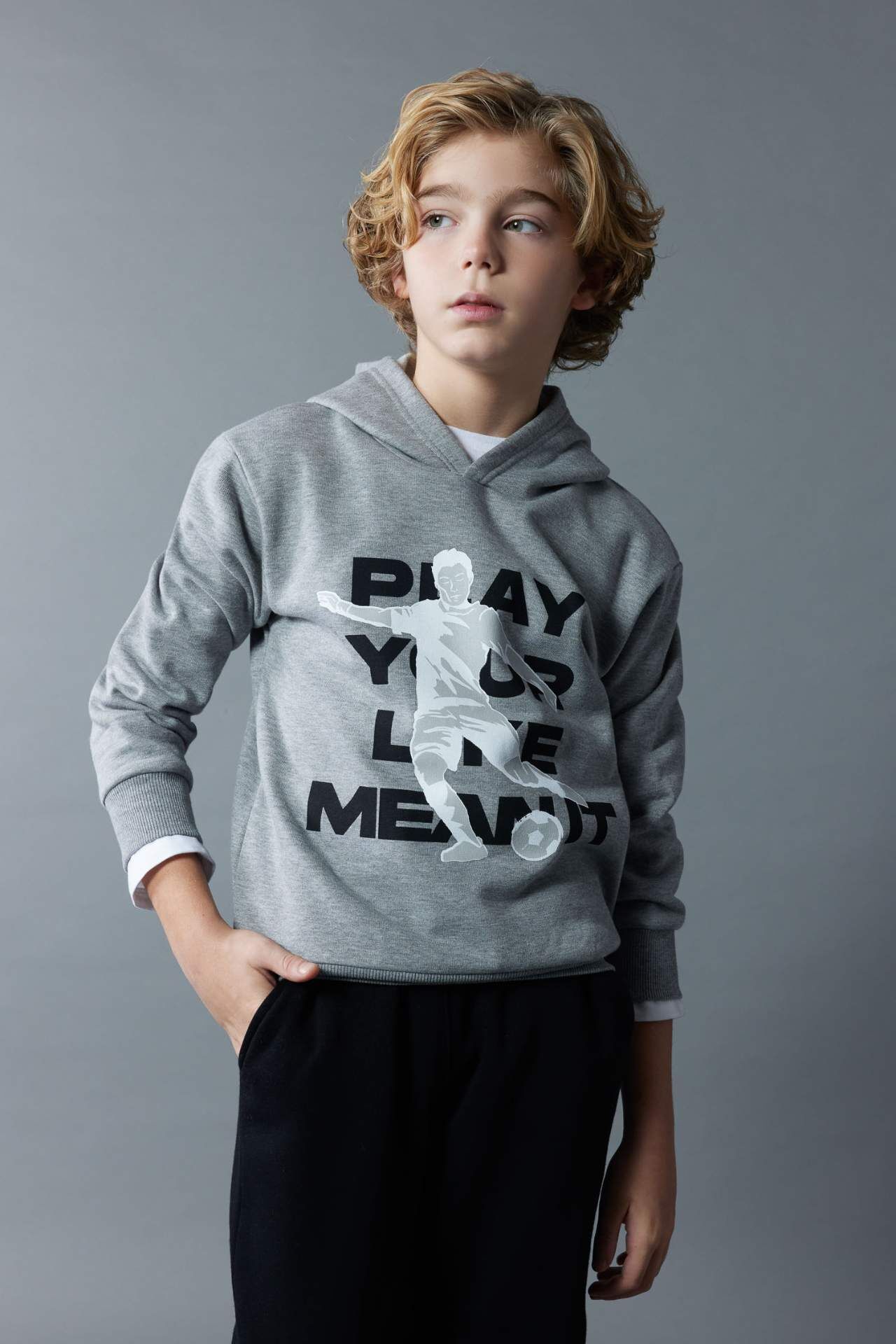 DeFactoFit Erkek Çocuk Kapüşonlu Baskılı Kalın Sweatshirt