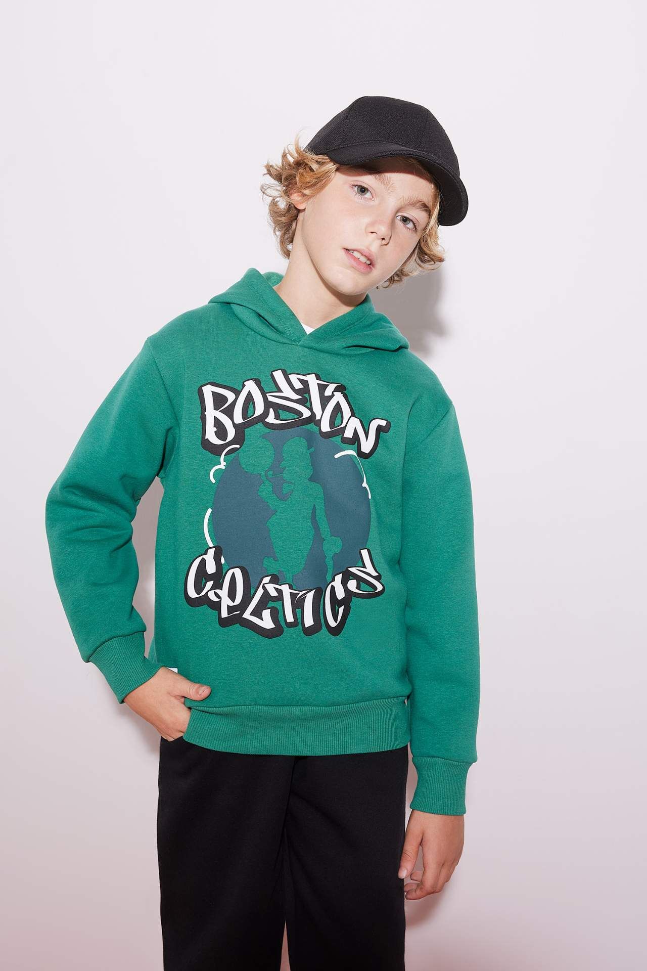 DeFactoFit Erkek Çocuk NBA Boston Celtics Kapüşonlu Kalın Sweatshirt