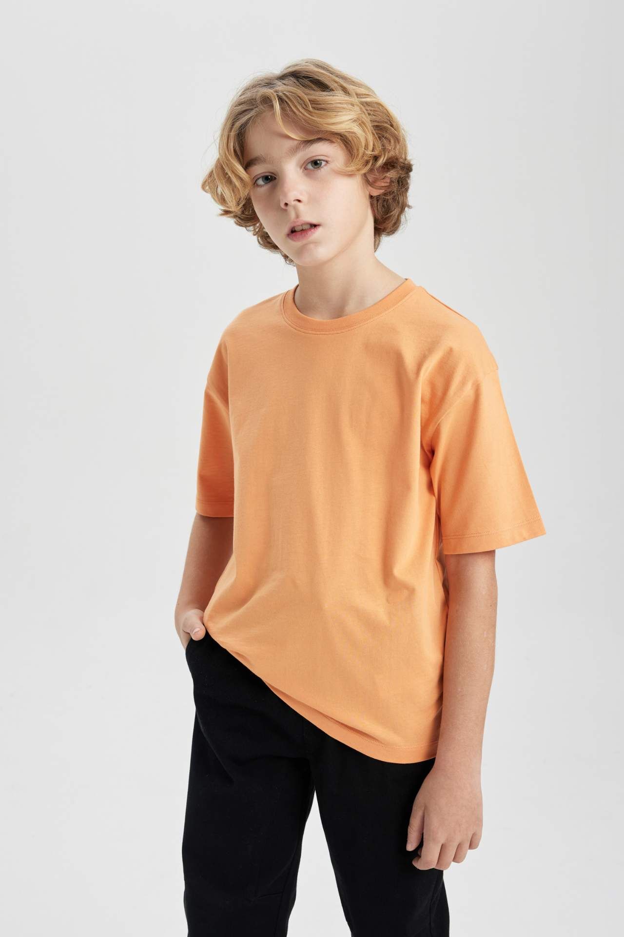 DeFactoFit Erkek Çocuk Oversize Fit Bisiklet Yaka Basic Kısa Kollu Tişört B5927A824SMOG71