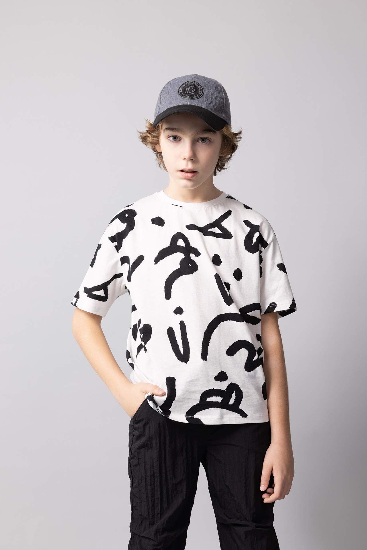 DeFactoFit Erkek Çocuk Oversize Fit Bisiklet Yaka Desenli Desenli Kısa Kollu Tişört