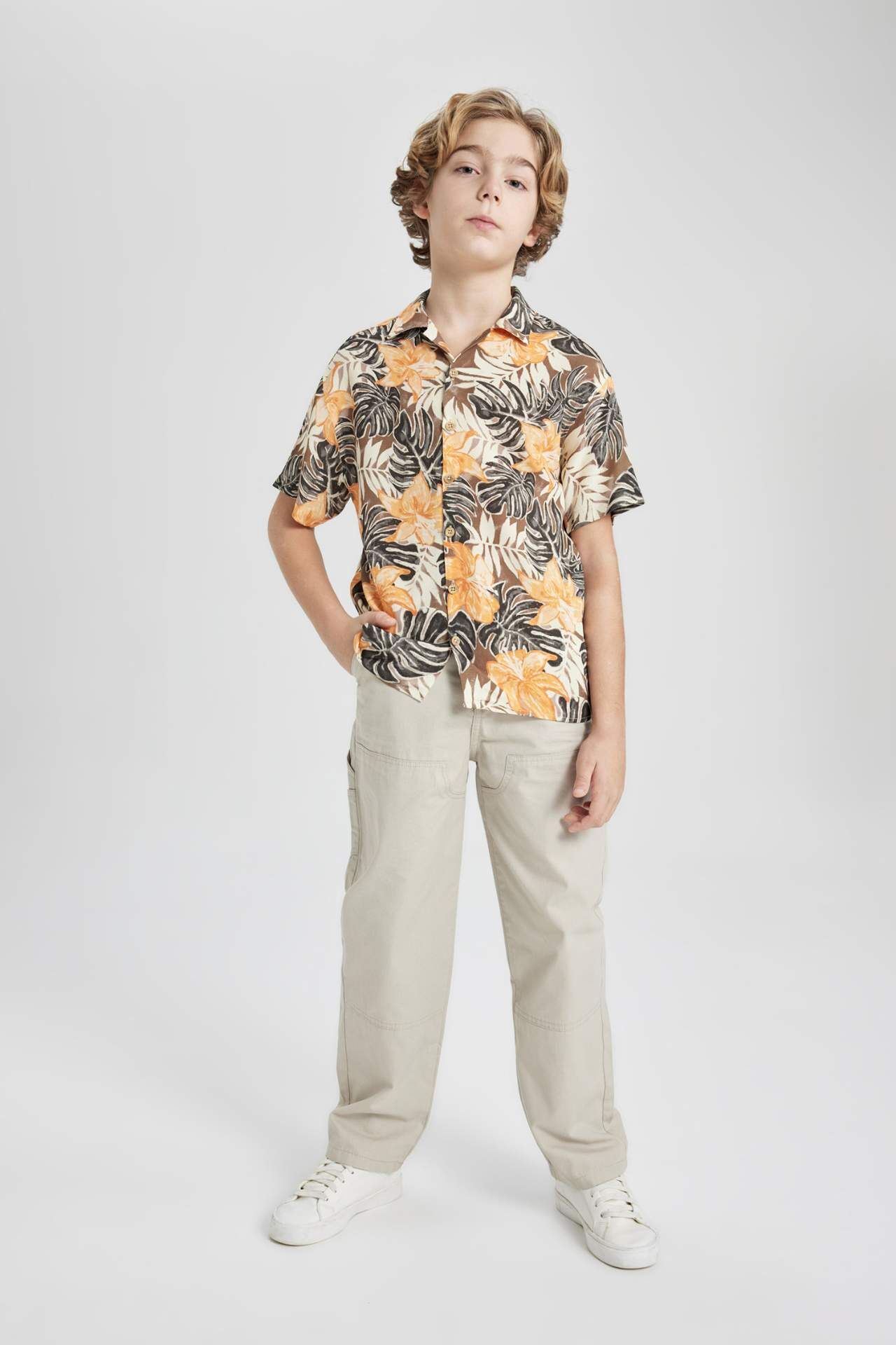 DeFactoFit Erkek Çocuk Oversize Fit Desenli Viskon Kısa Kollu Gömlek