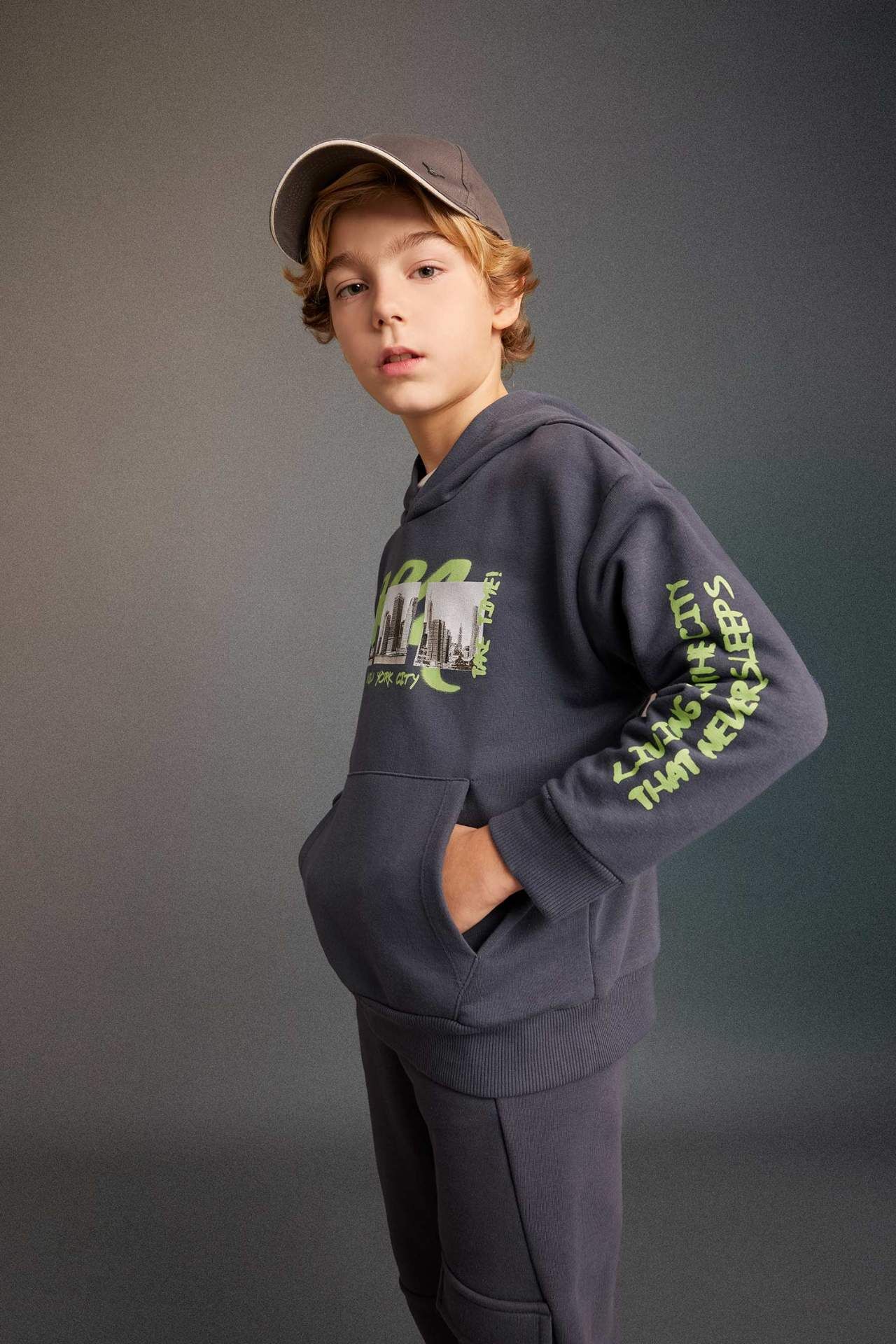 DeFactoFit Erkek Çocuk Oversize Fit Kapüşonlu Sweatshirt C0359A823CWAR153
