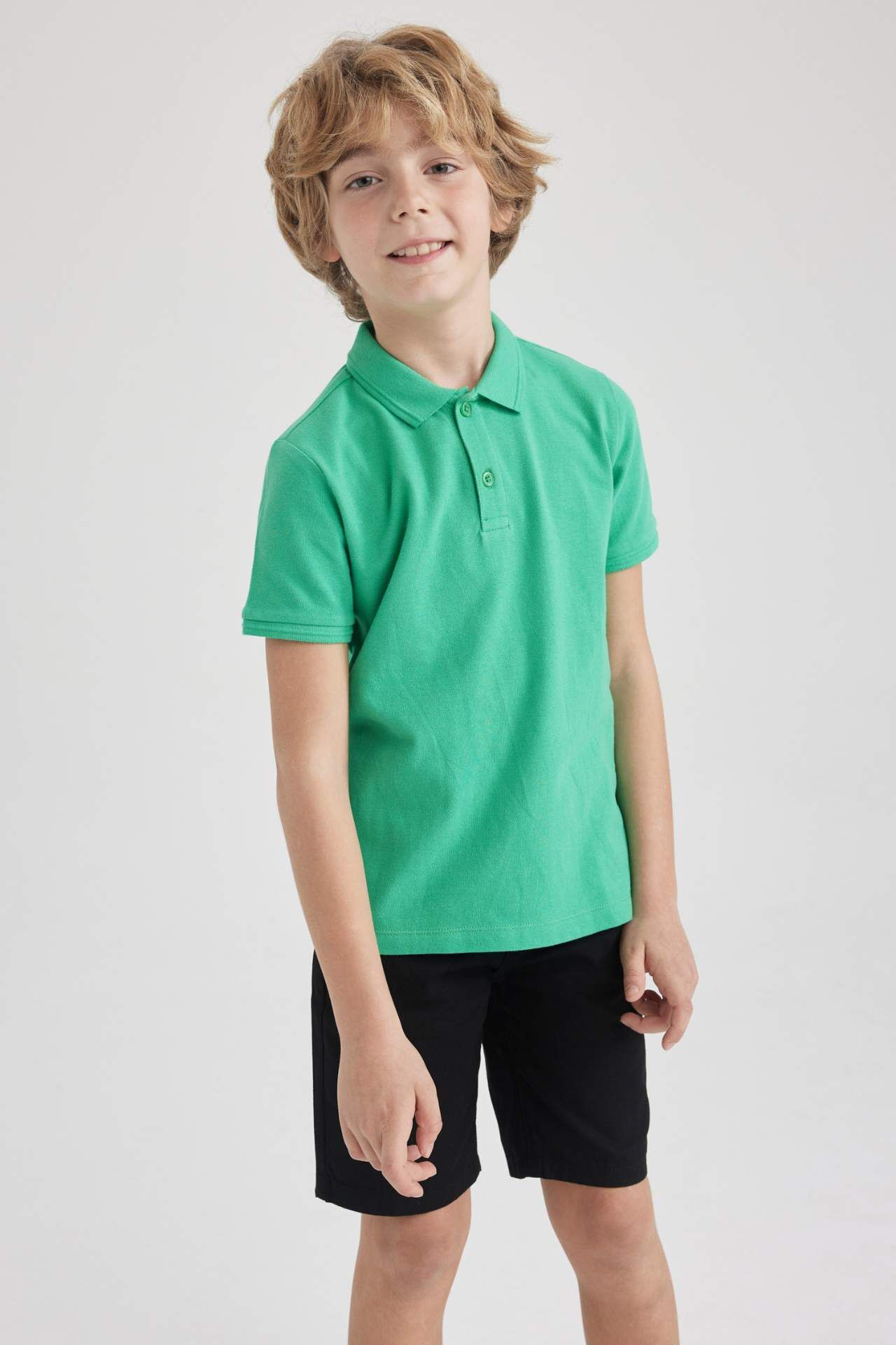 DeFacto Erkek Çocuk Pike Kısa Kollu Polo Tişört Yeşil