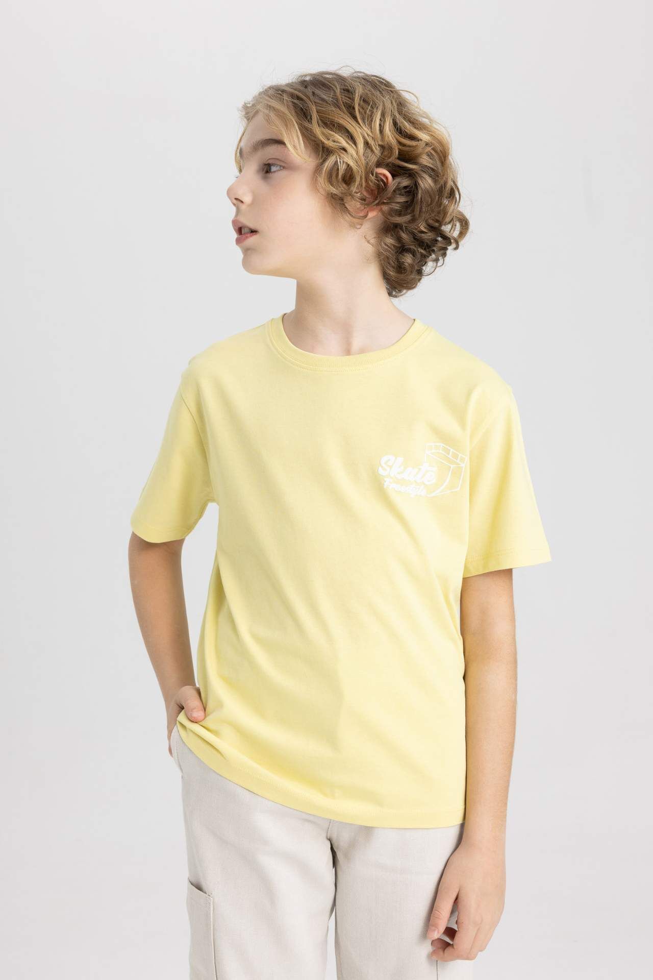 DeFactoFit Erkek Çocuk Regular Fit Bisiklet Yaka Baskılı Kısa Kollu Tişört C3298A824SMYL270