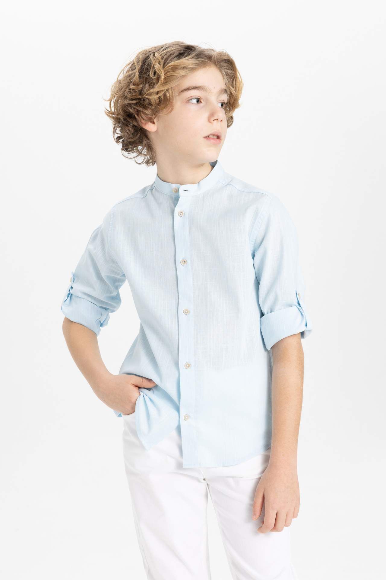 DeFactoFit Erkek Çocuk Regular Fit Dik Yaka Uzun Kollu Gömlek B5968A824SMBE440